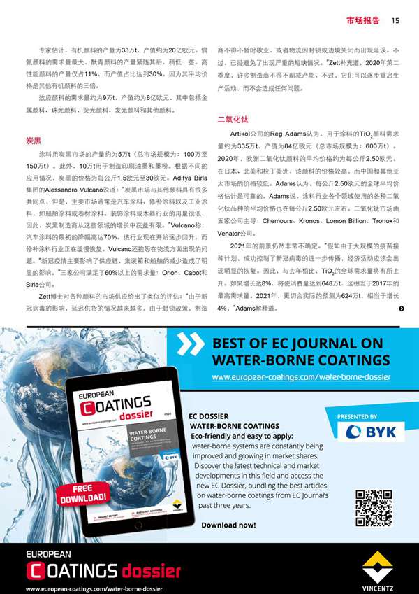專題:顏料和填料 丙烯酸乳膠可持續發展的替代品 市場報告:填料和顏料市場 含納米二氧化鈦的涂料