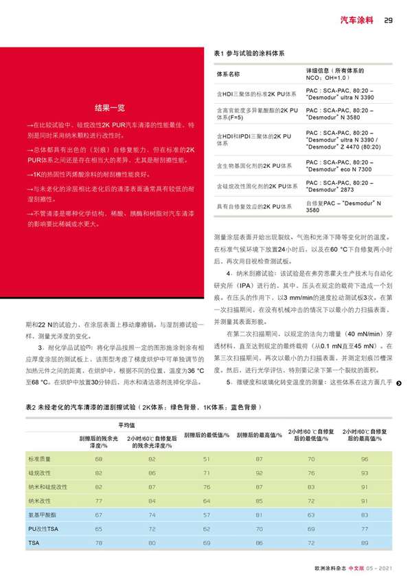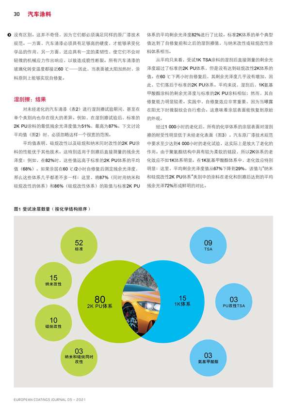 摘要:對95種汽車清漆體系進行了干/濕刮擦試驗(老化前后)和耐化學品試驗。該基準研究的試驗揭示了各體系之間存在巨大的差異。