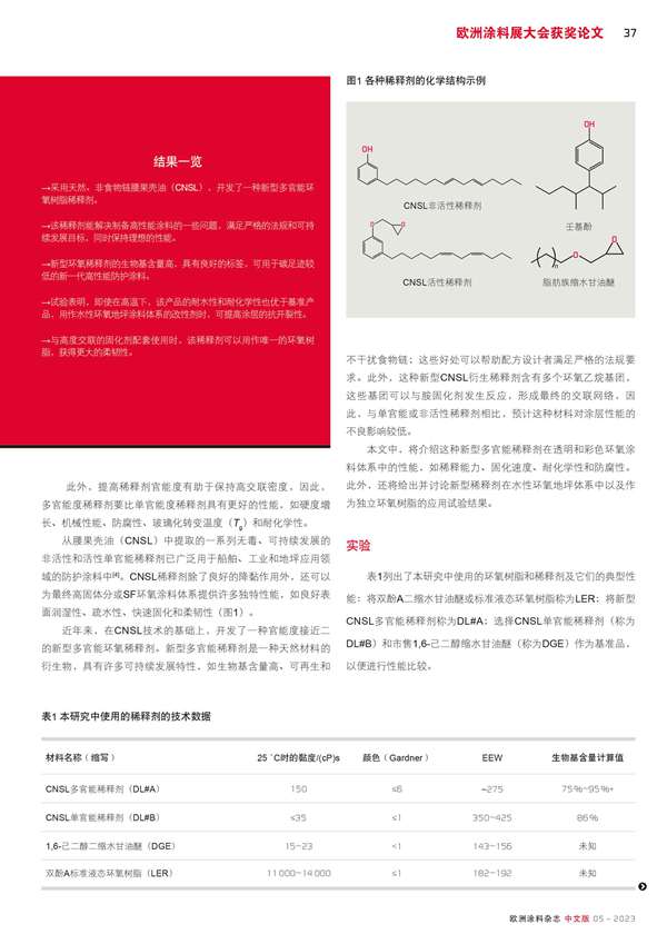用于高性能低VOC防護涂料的可持續發展CNSL稀釋劑
