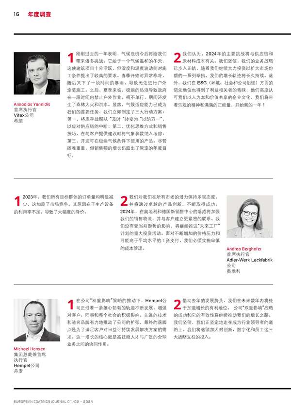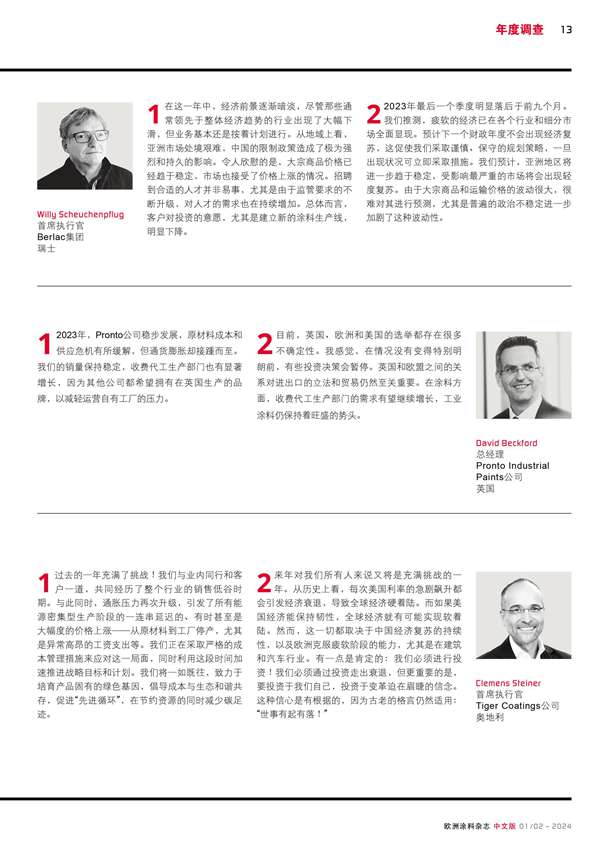歐洲涂料生產商主要負責人的回顧和展望分享