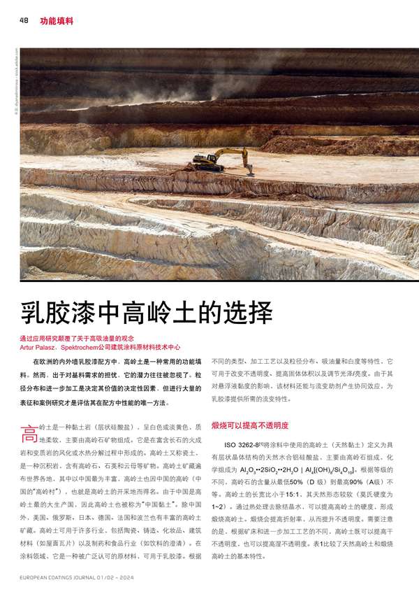 摘要:乳膠漆中高嶺土的選擇