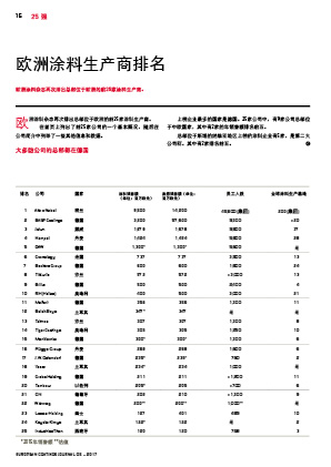 摘要:歐洲涂料雜志再次排出總部位于歐洲的前25家涂料生產商