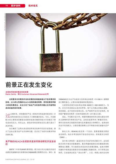 專題:樹脂和助劑 技術(shù)論文:棄用包裝涂料中的聚四氟乙烯組分 鋅片可以作為鋅粉的可持續(xù)發(fā)展替代品 市場報告:涂料助劑市場逐趨穩(wěn)定