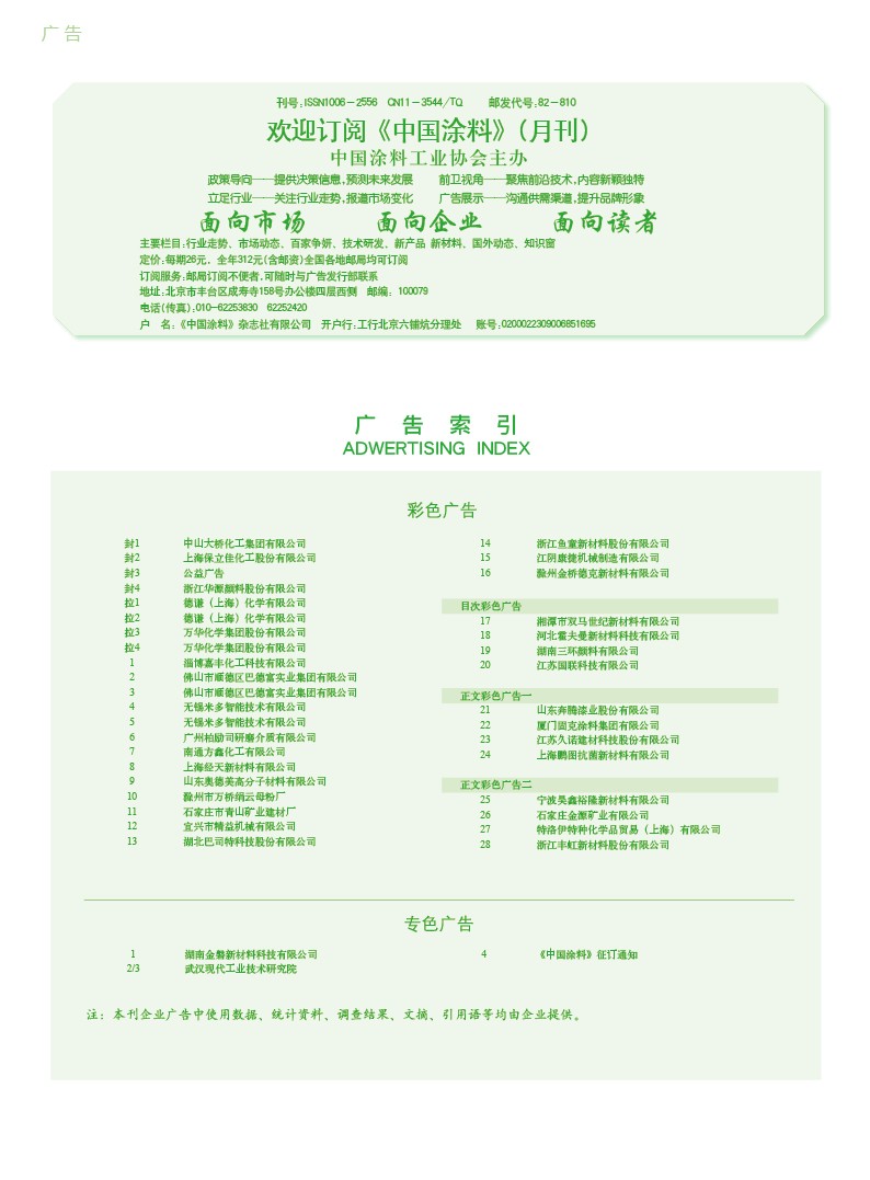 湖南金磐、武漢現(xiàn)代工業(yè)技術(shù)研究院、《中國(guó)涂料》征訂通知