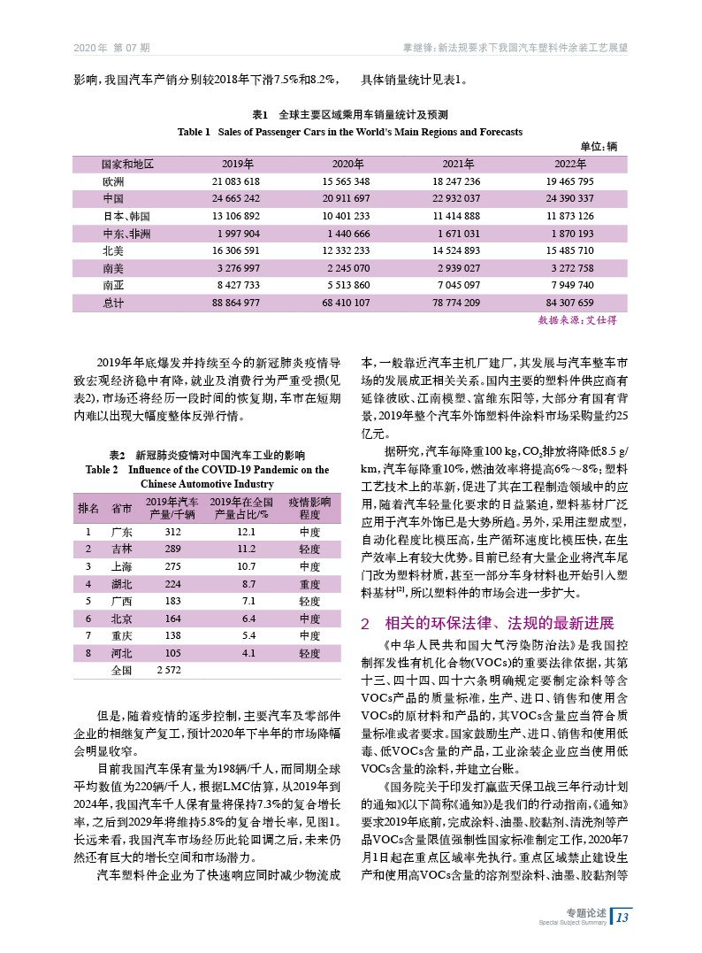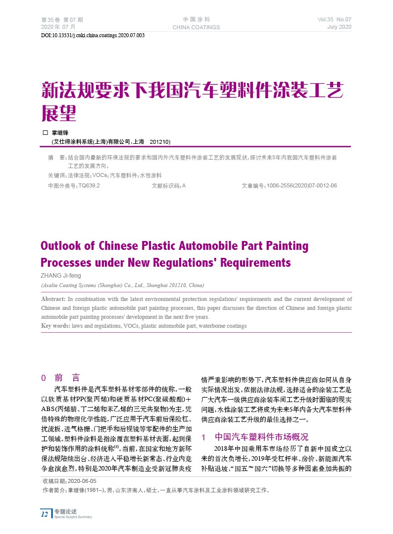 新法規要求下我國汽車塑料件涂裝工藝展望