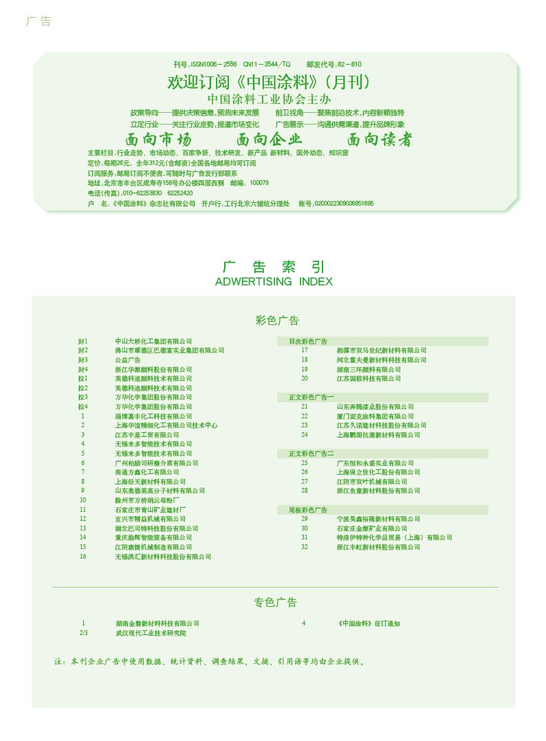 湖南金磐、武漢現(xiàn)代工業(yè)技術(shù)研究院、《中國涂料》征訂通知