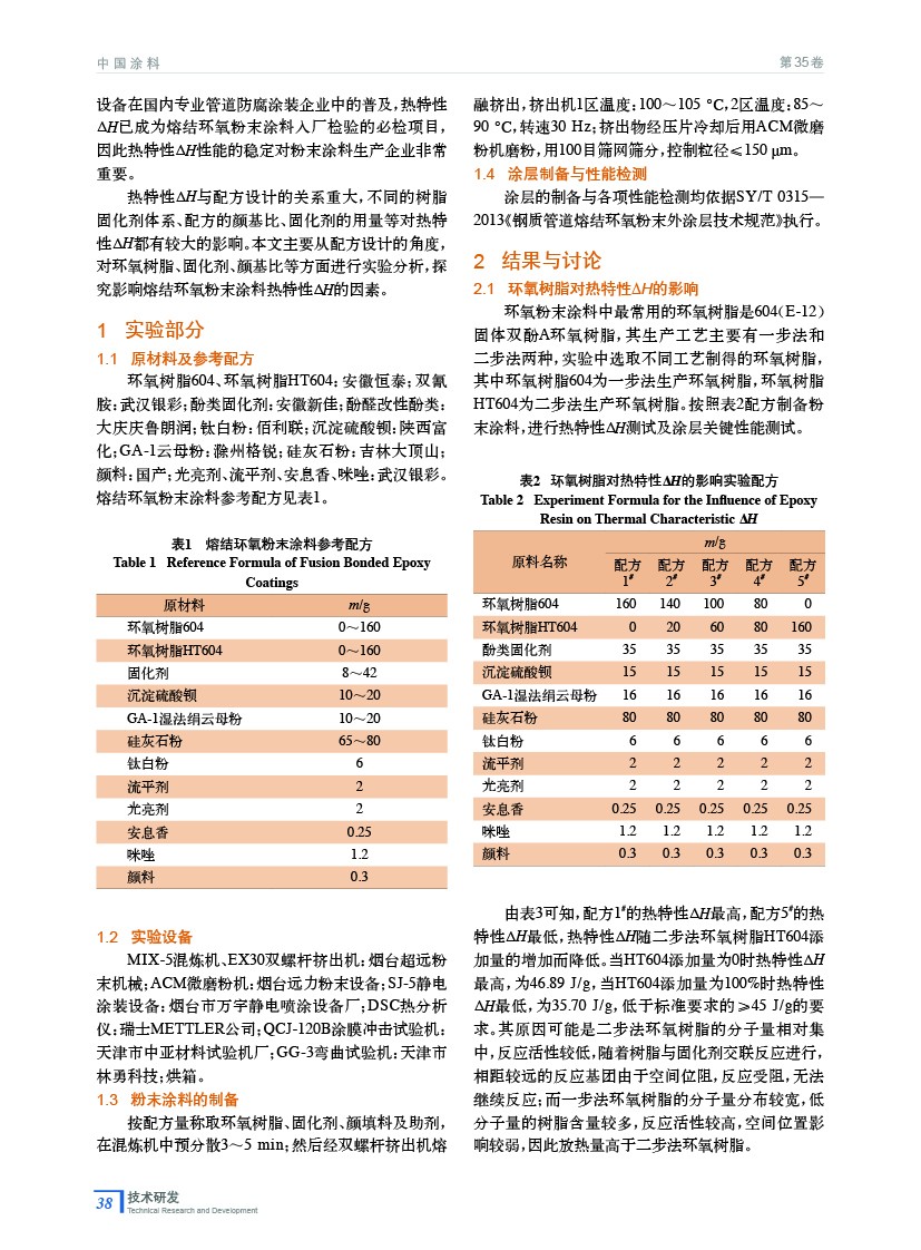 熔結(jié)環(huán)氧粉末涂料熱特性ΔH影響因素研究