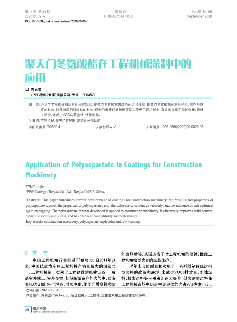 聚天門冬氨酸酯在工程機械涂料中的應用