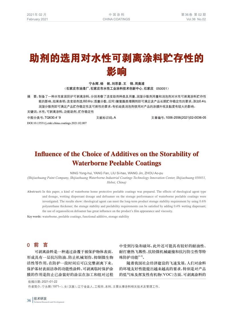 發(fā)表于2021-04-16 9:33:45| 次閱讀| 來源中國涂料| 作者寧永輝,楊 帆,劉思豪,王 錦,周奧浦