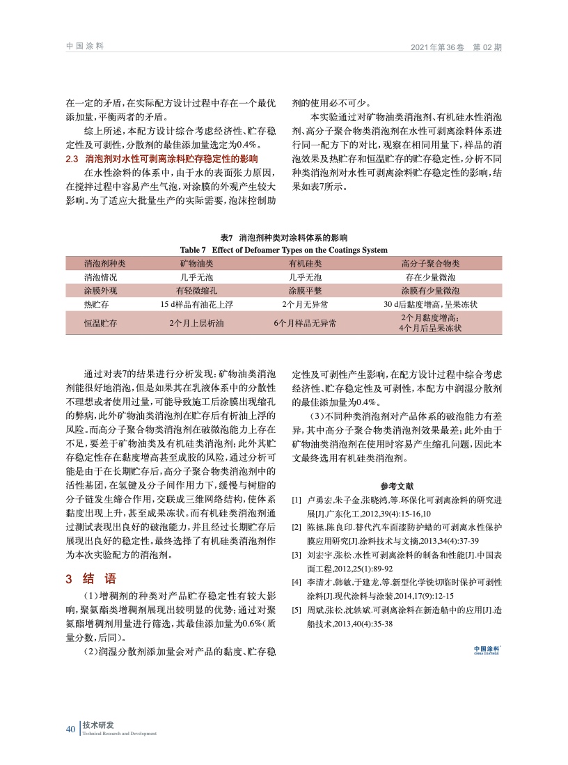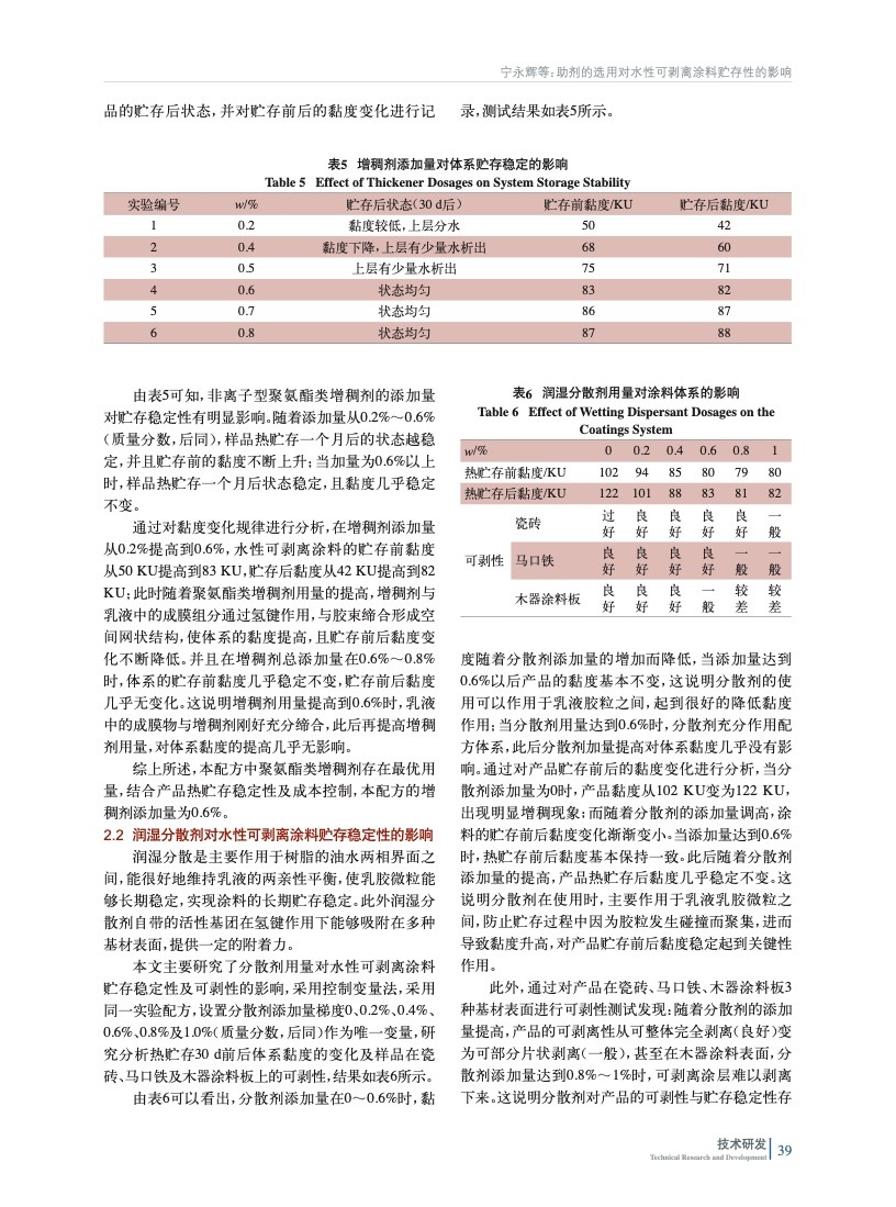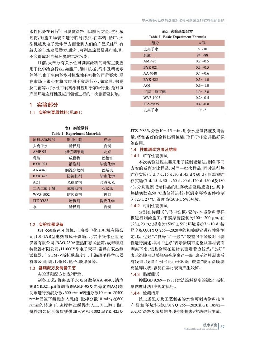 助劑的選用對水性可剝離涂料貯存性的影響