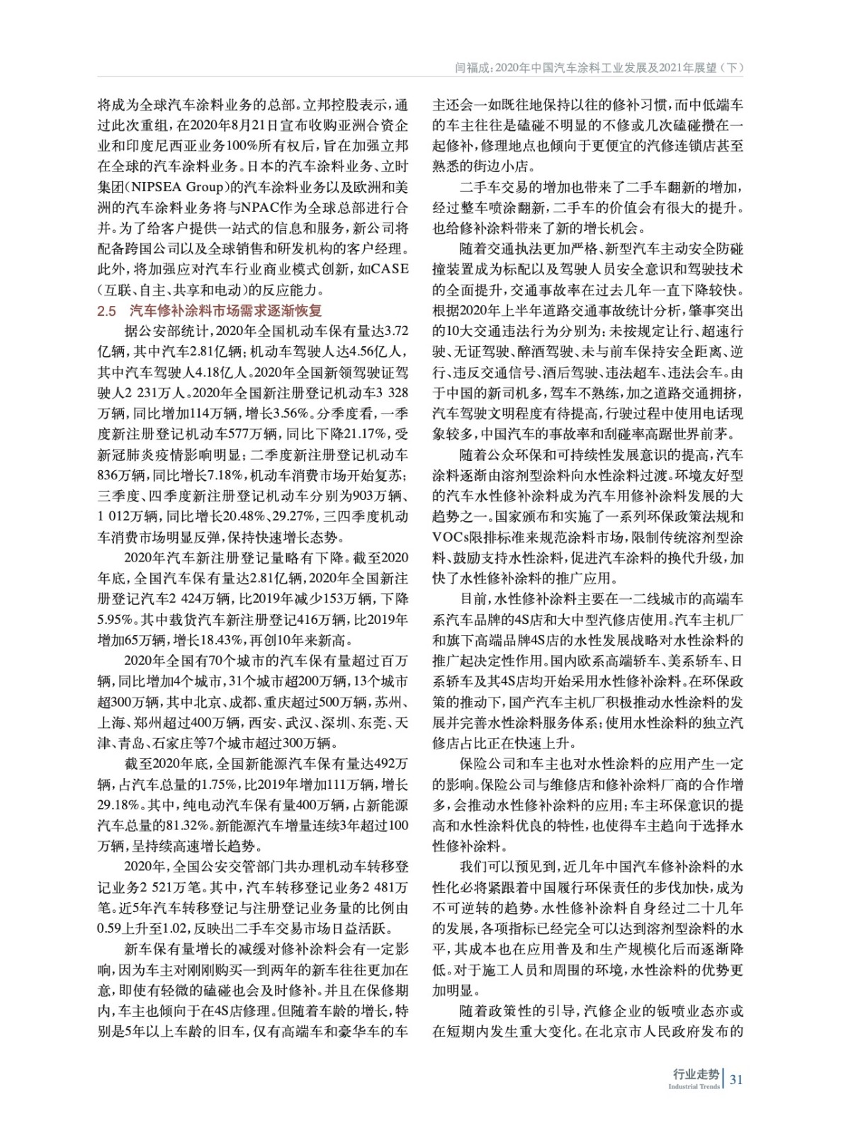 2020年中國汽車涂料工業(yè)發(fā)展及2021年展望(下)
