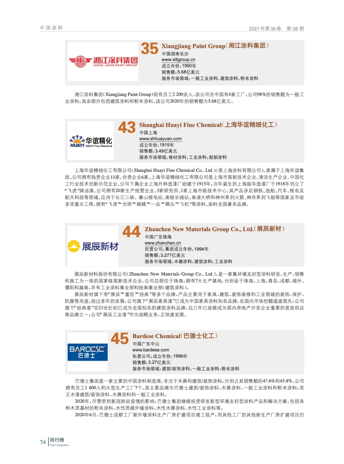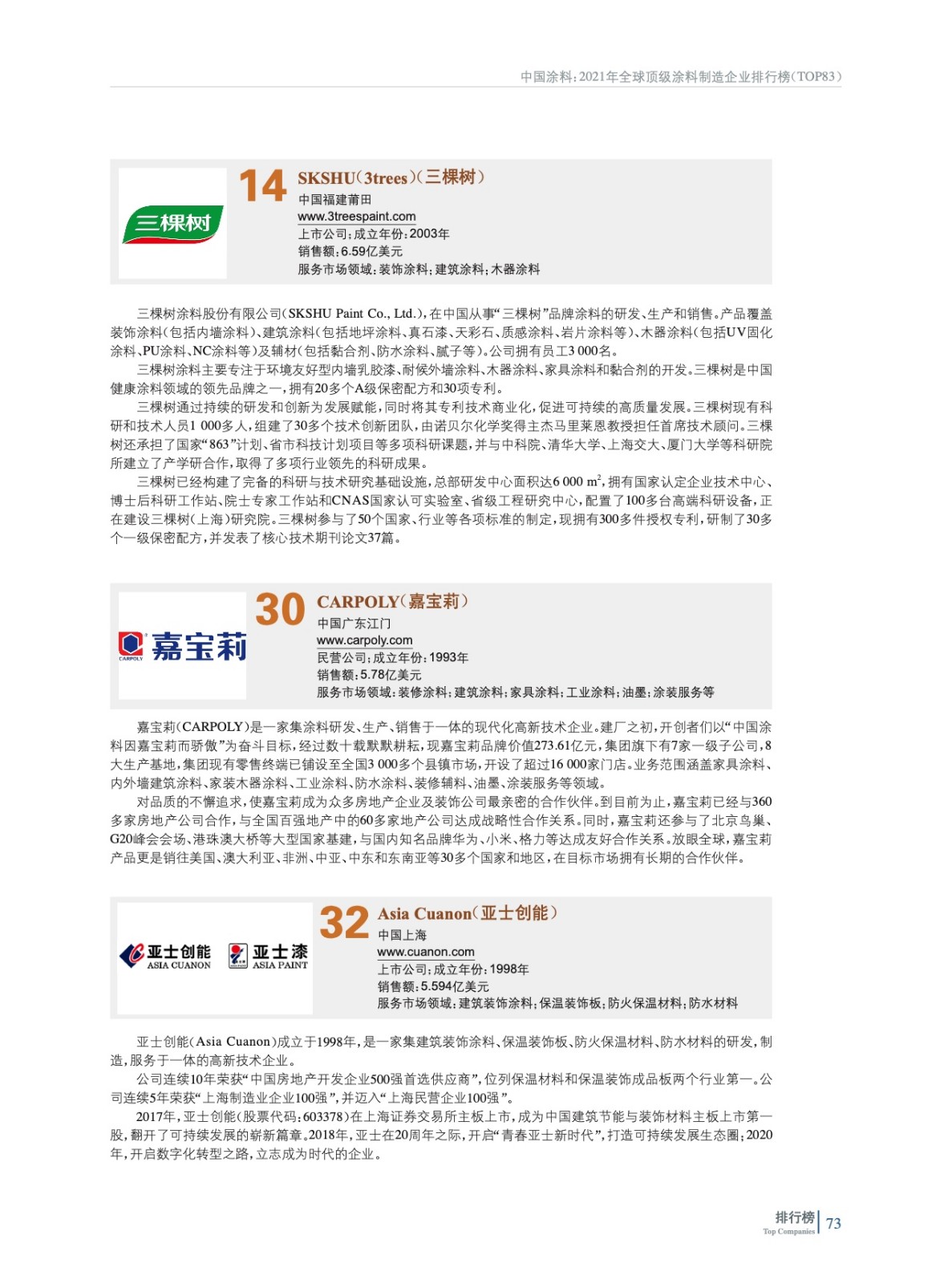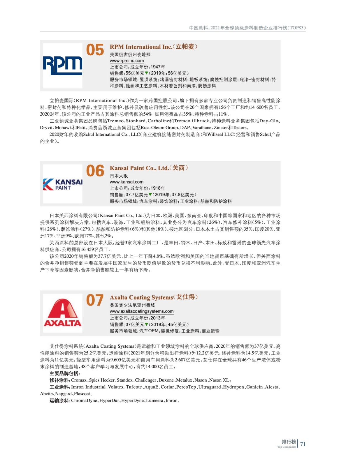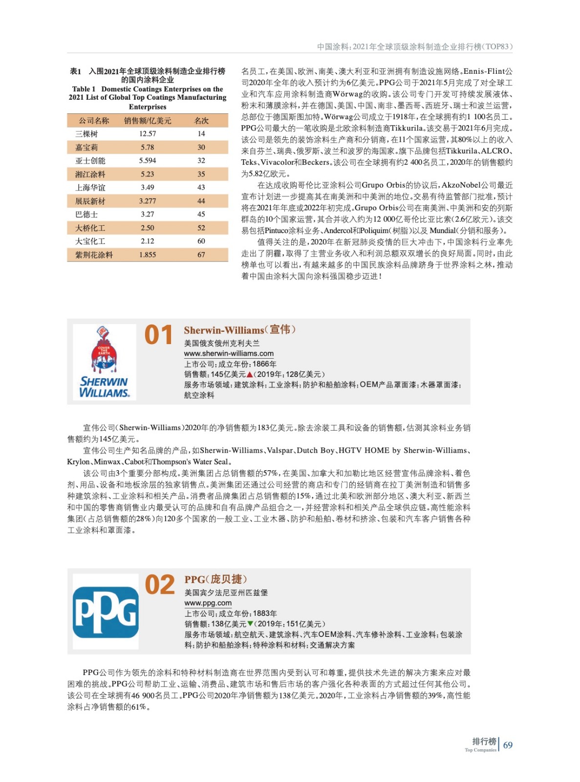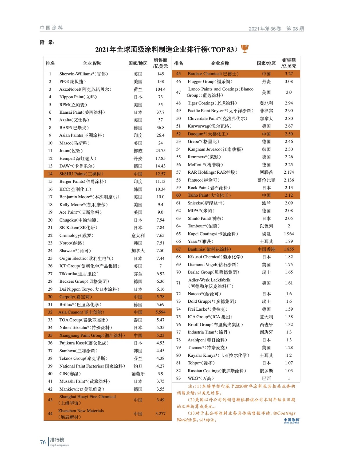 2021年全球頂級(jí)涂料制造企業(yè)排行榜(TOP 83)