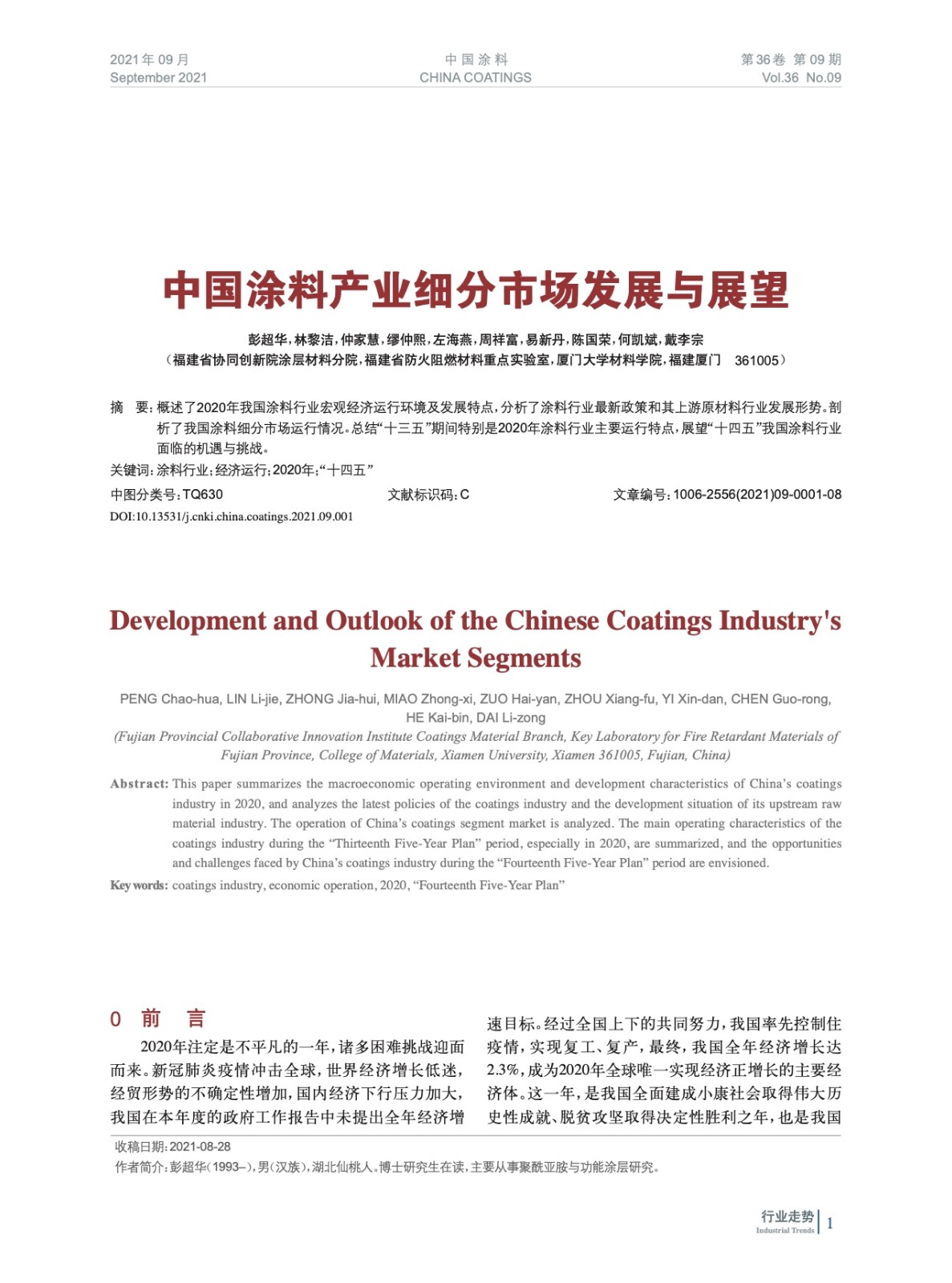 本文系作者@彭超華,林黎潔,仲家慧,繆仲熙,左海燕,周祥富,易新丹,陳國榮,何凱斌,戴李宗 授權中國涂料網發表,并經中國涂料網編輯,未經允許不得轉載,如需轉載請聯系chinacoatingnet@vip.163.com