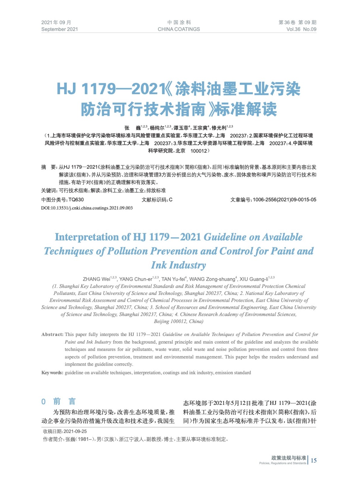 HJ 1179—2021《涂料油墨工業污染防治可行技術指南》標準解讀