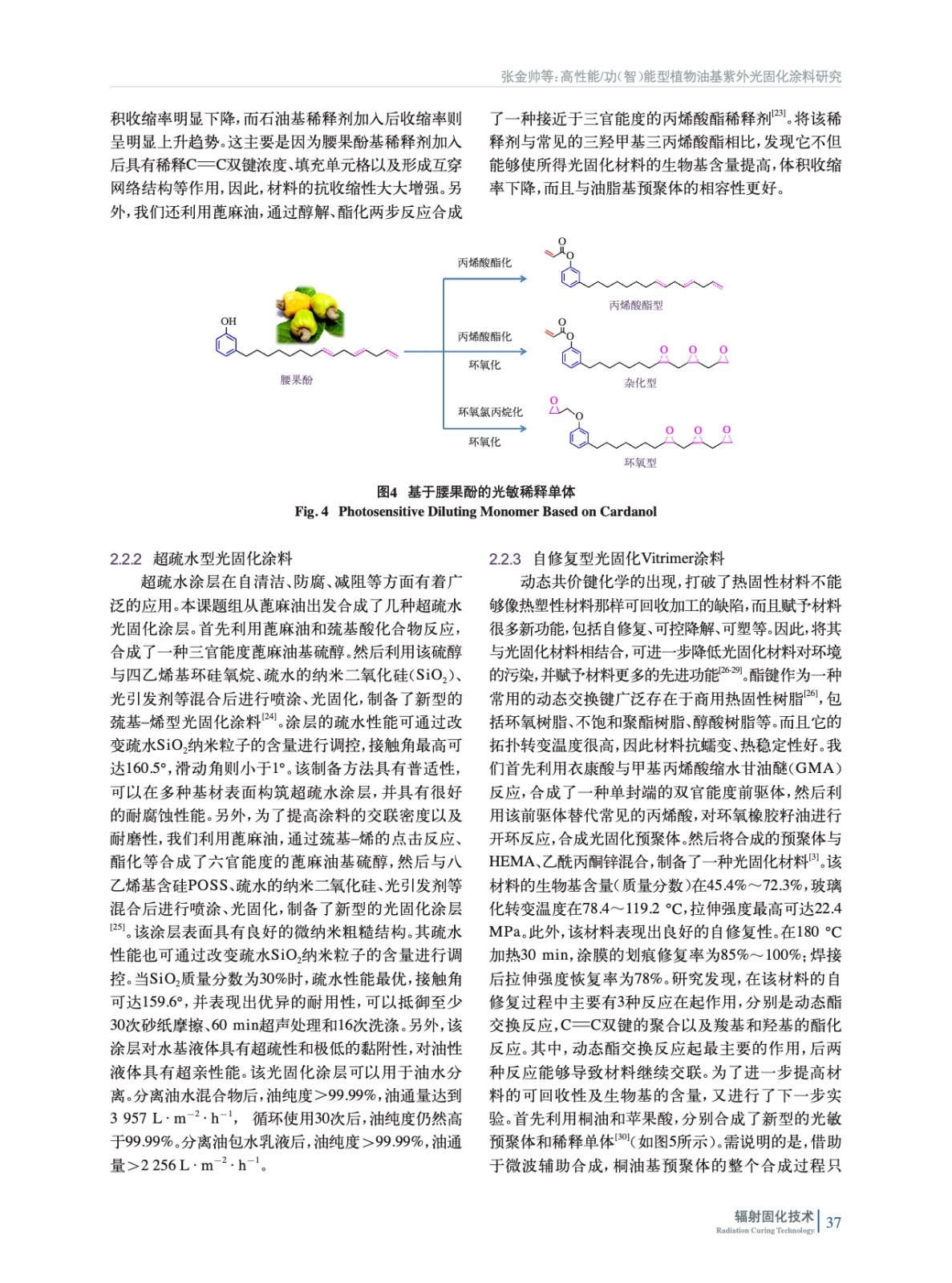 高性能/功(智)能型植物油基紫外光固化涂料研究