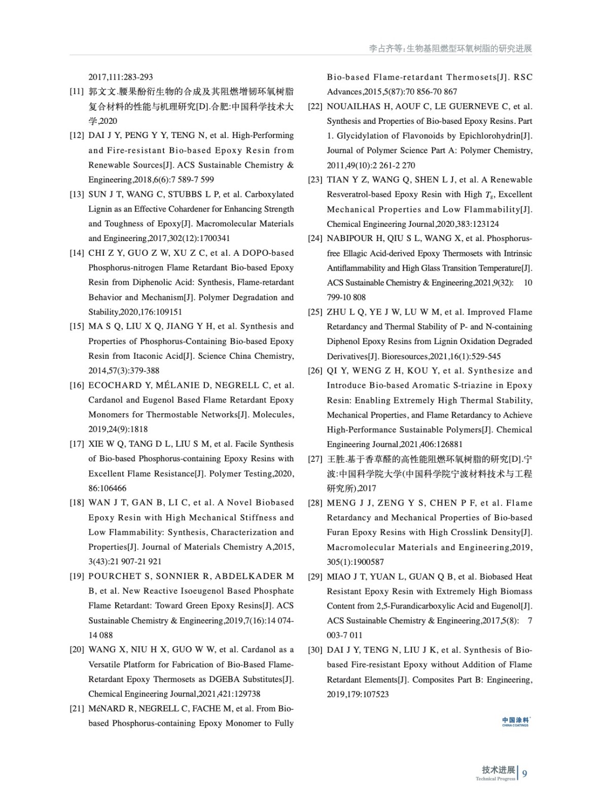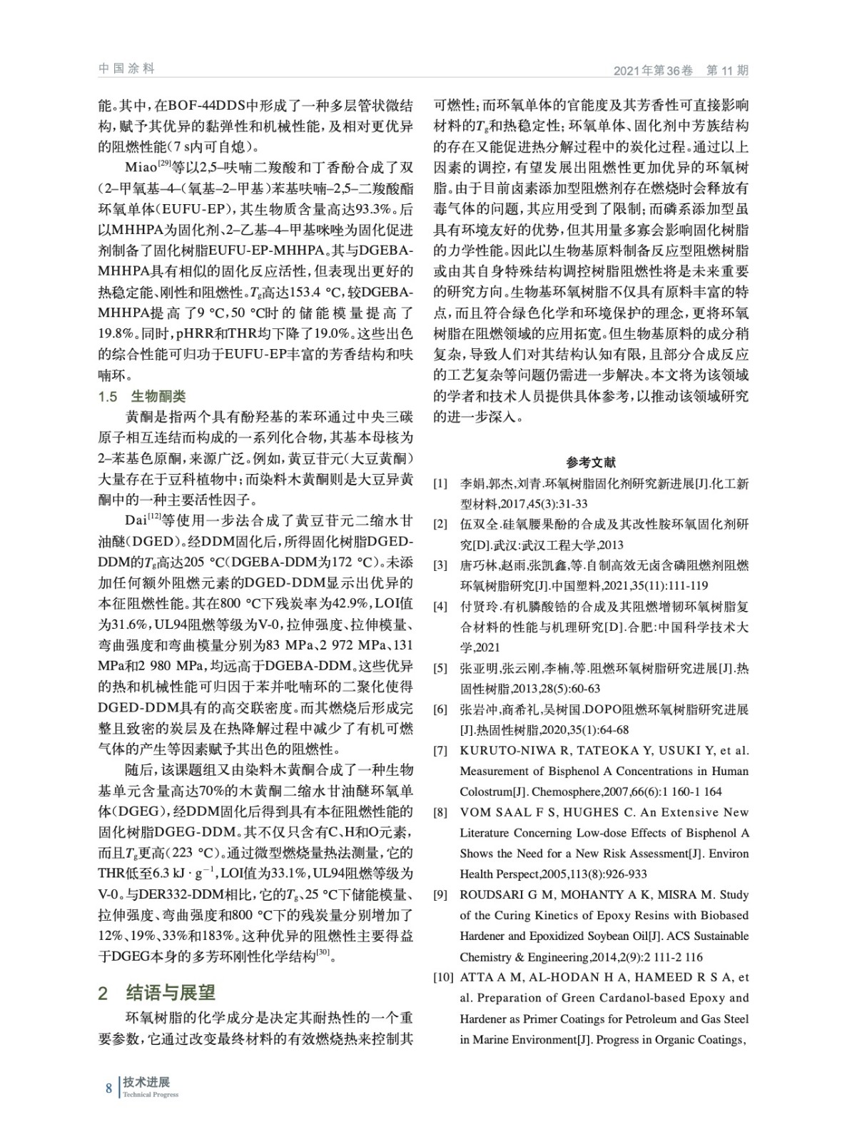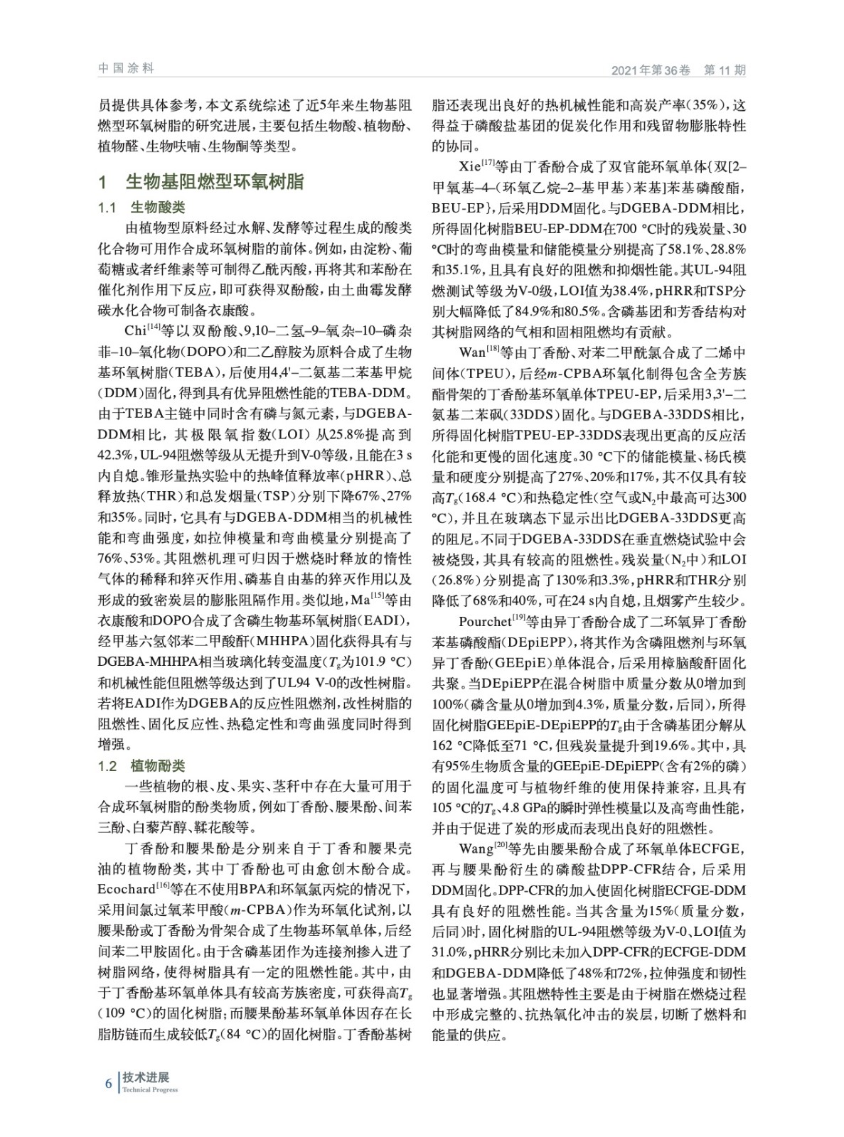 綜述了近年來國內外學者在以生物基原料制備阻燃型環氧樹脂領域的研究進展,主要涉及生物酸、植物酚、植物醛、生物呋喃、生物酮等類型,并進行了展望。