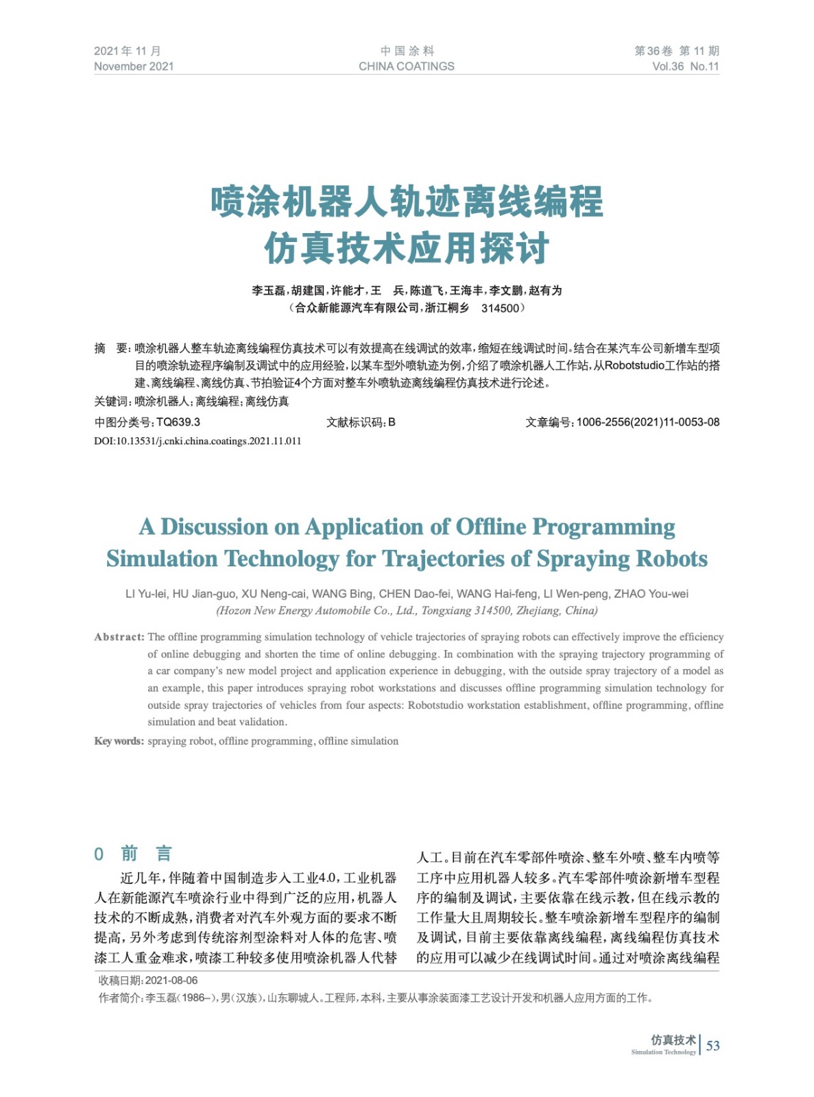 本文系作者@李玉磊,胡建國,許能才,王 兵,陳道飛,王海豐,李文鵬,趙有為 授權(quán)中國涂料網(wǎng)發(fā)表,并經(jīng)中國涂料網(wǎng)編輯,未經(jīng)允許不得轉(zhuǎn)載,如需轉(zhuǎn)載請聯(lián)系chinacoatingnet@vip.163.com