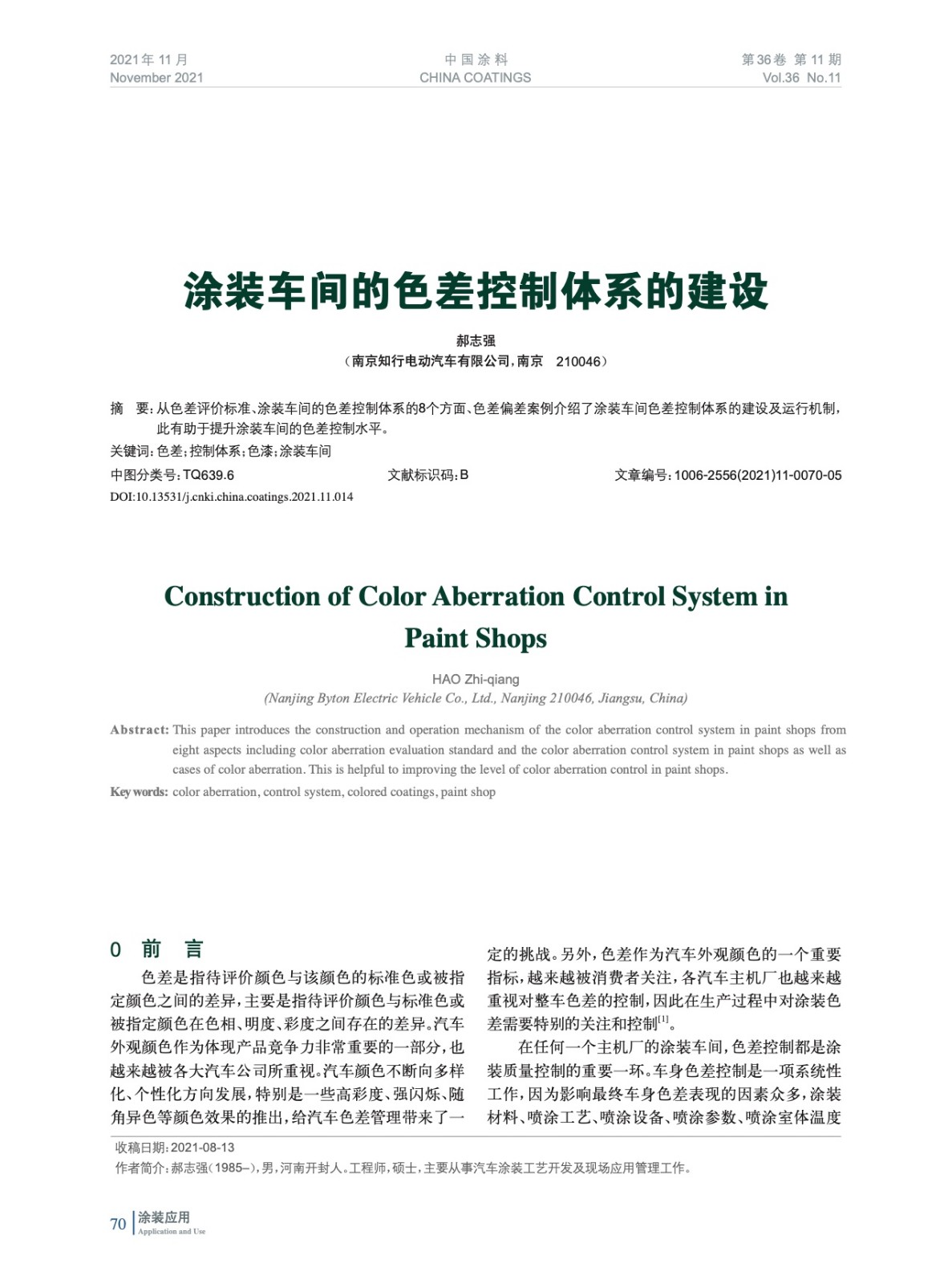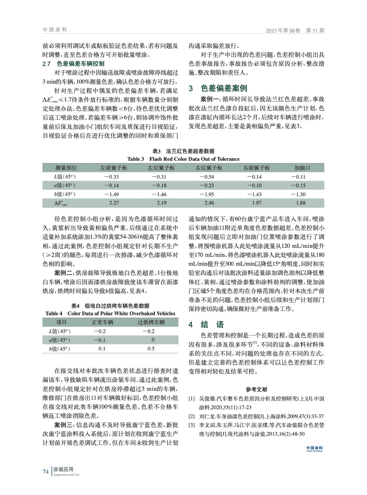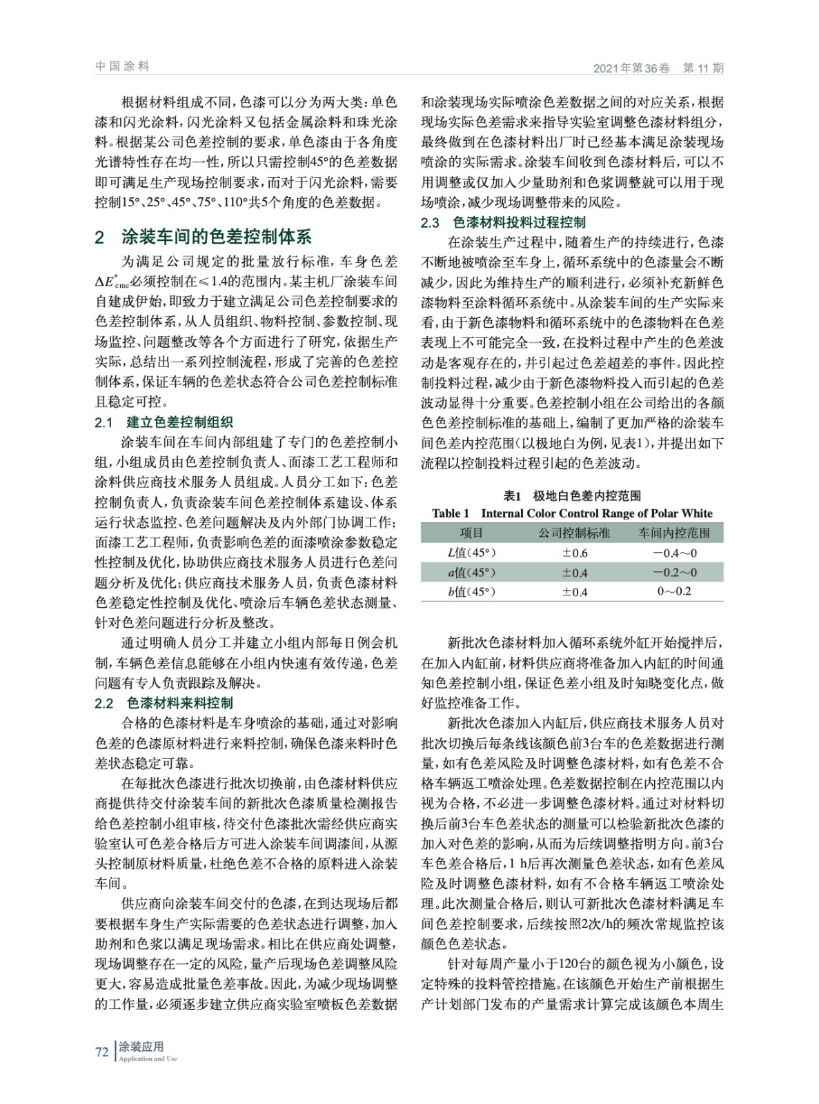 從色差評價標準、涂裝車間的色差控制體系的8個方面、色差偏差案例介紹了涂裝車間色差控制體系的建設及運行機制,此有助于提升涂裝車間的色差控制水平。