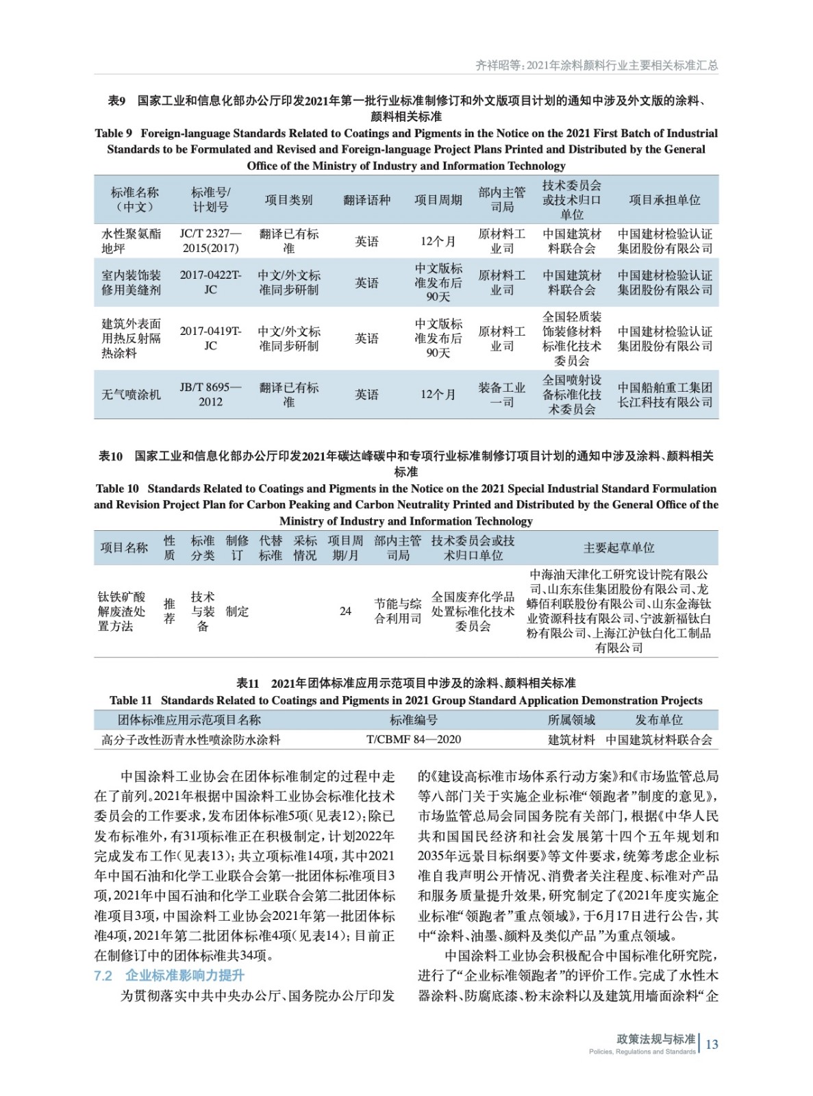2021年涂料顏料行業(yè)主要相關(guān)標準匯總