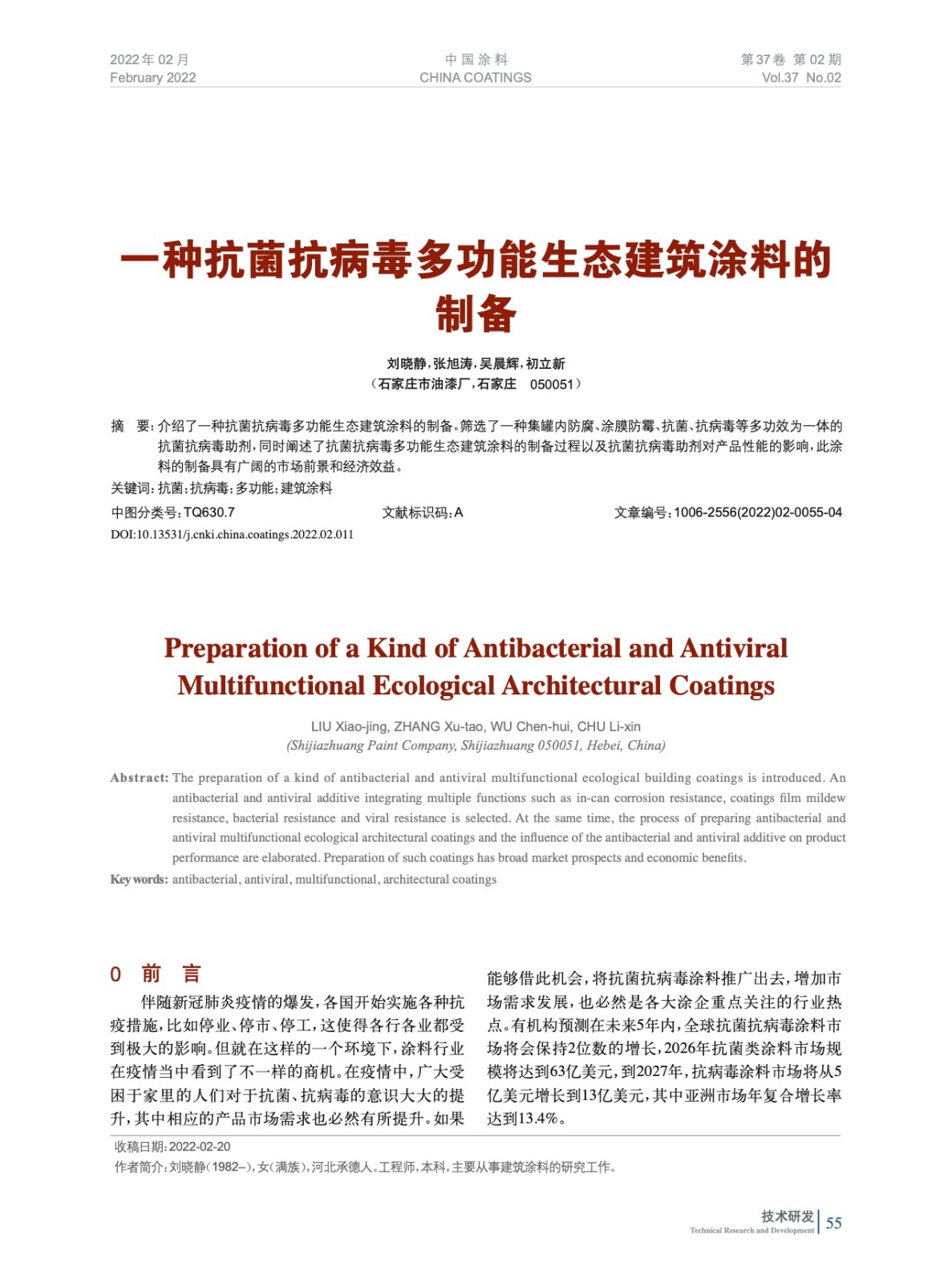 本文系作者@劉曉靜,張旭濤,吳晨輝,初立新 授權中國涂料網發表,并經中國涂料網編輯,未經允許不得轉載,如需轉載請聯系chinacoatingnet@vip.163.com