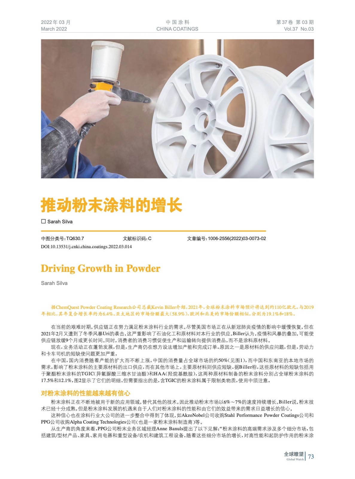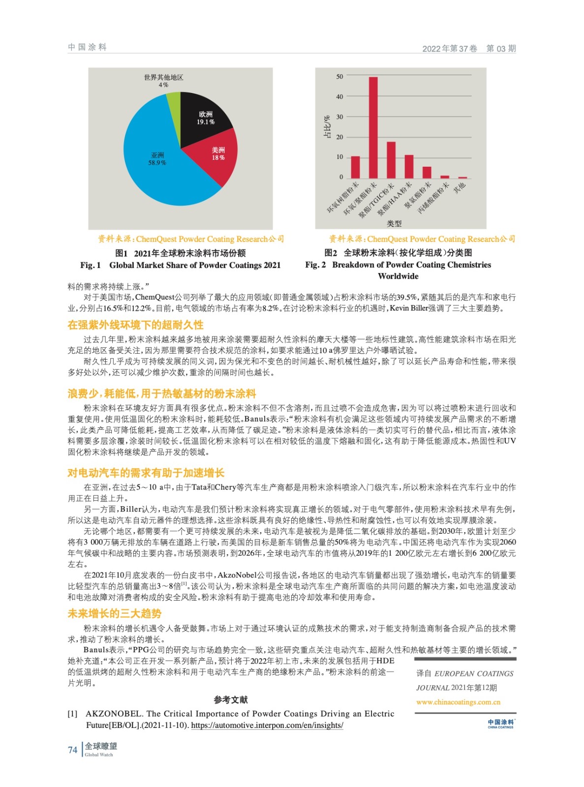摘要:編者按:據(jù)ChemQuest Powder Coating Research公司總裁Kevin Biller介紹,2021年,全球粉末涂料市場預計將達到約110億歐元,與2019年相比,其年復合增長率約為6.4%。亞太地區(qū)的市場份額最大(58.9%),歐洲和北美的市場份額相似,分別為19.1%和18%。
