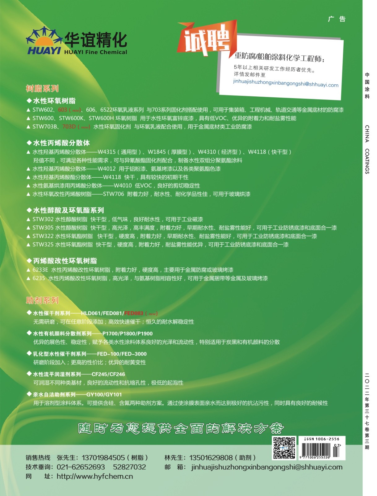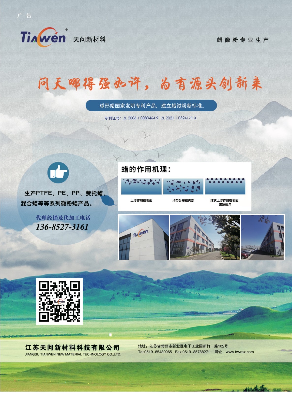摘要:封1:朗盛特殊化學(xué)品有限公司;封2:江蘇天問(wèn)新材料科技有限公司;封3:公益廣告;封4:上海華誼精細(xì)化工有限公司技術(shù)中心