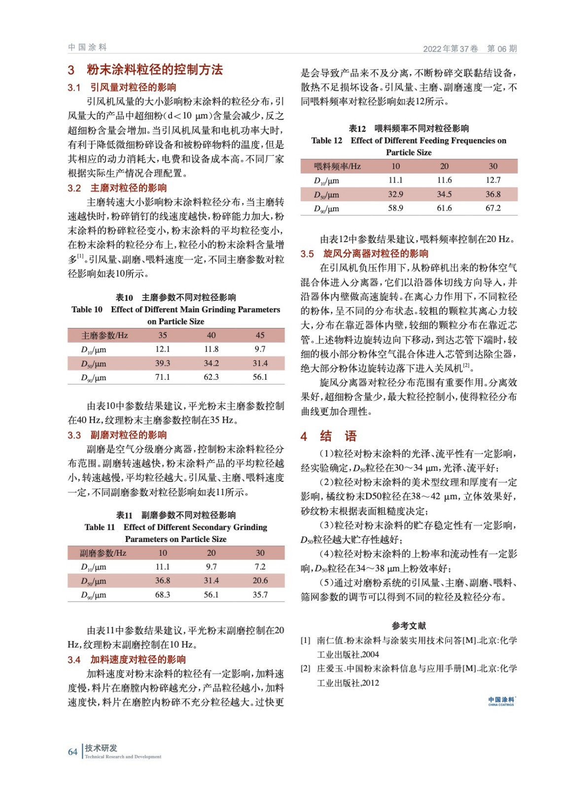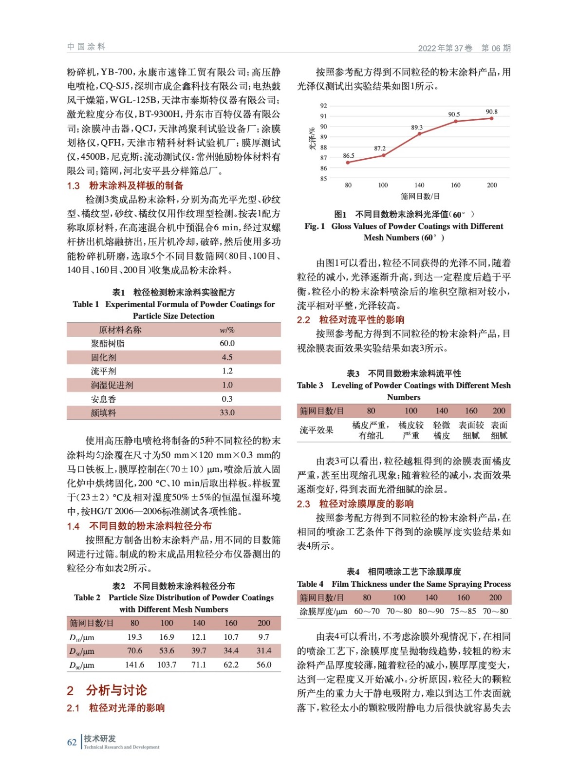 分析了粒徑對涂膜外觀及涂裝工藝的影響因素,如光澤度、流平性、涂膜厚度、紋理型表面效果以及粉體流動性、貯存穩定性、上粉率和噴涂面積等,針對不同的需求給出了粉末涂料粒徑及分布的控制方法。