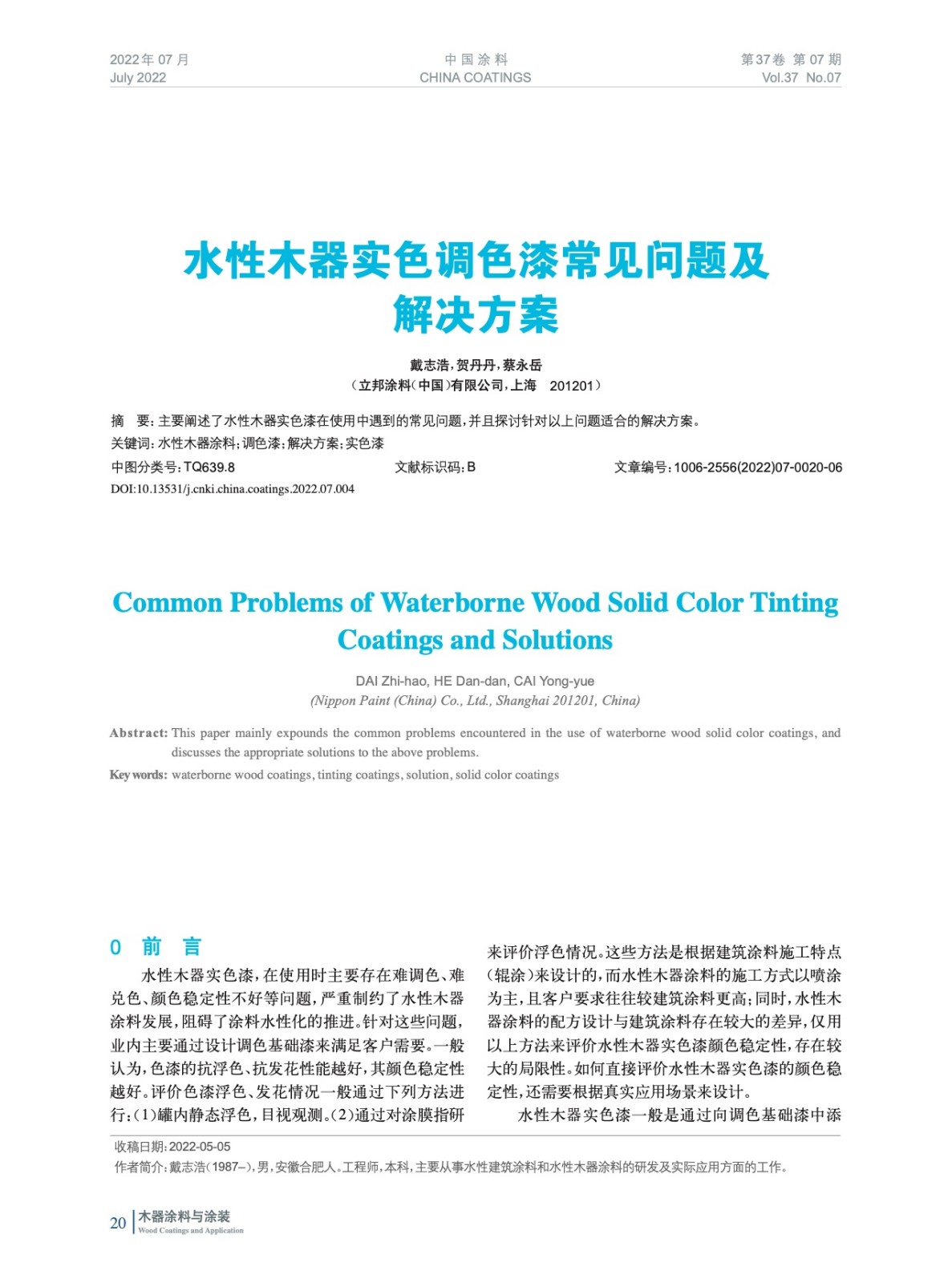 主要闡述了水性木器實色漆在使用中遇到的常見問題,并且探討針對以上問題適合的解決方案。