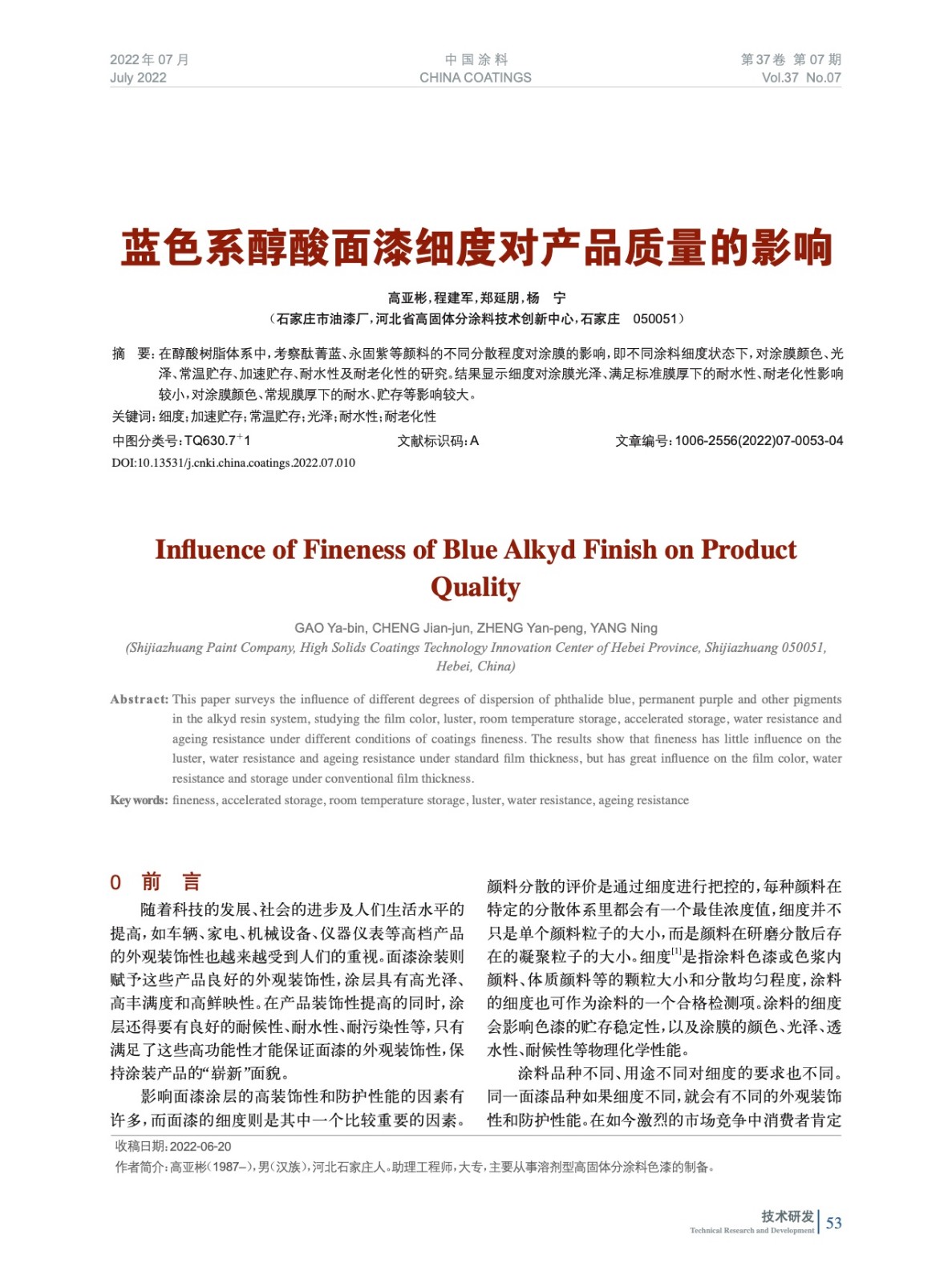 發(fā)表于2022-10-09 14:18:09| 次閱讀| 來源中國涂料| 作者高亞彬,程建軍,鄭延朋,楊 寧
