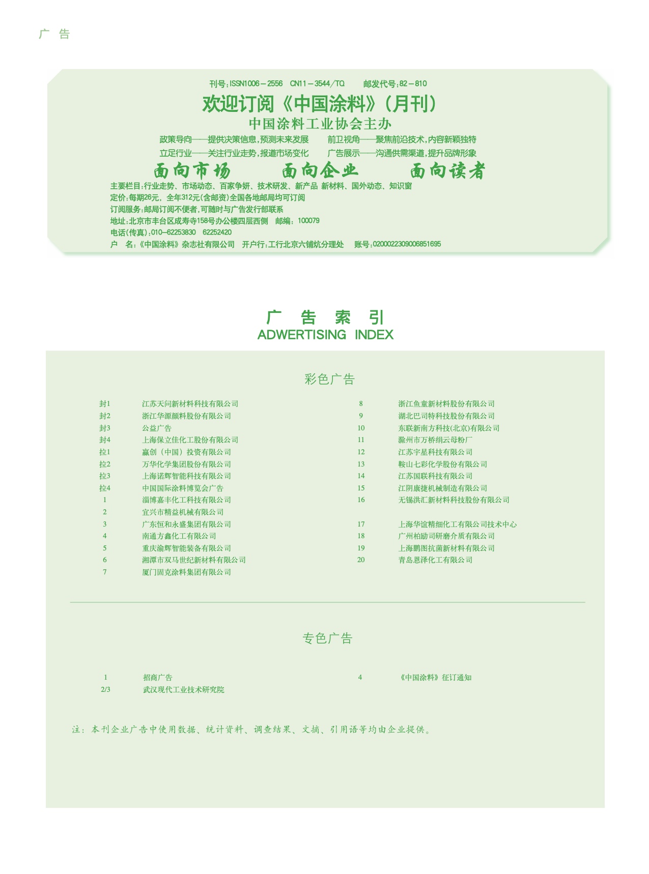 招商廣告、武漢現(xiàn)代、《中國涂料》征訂通知