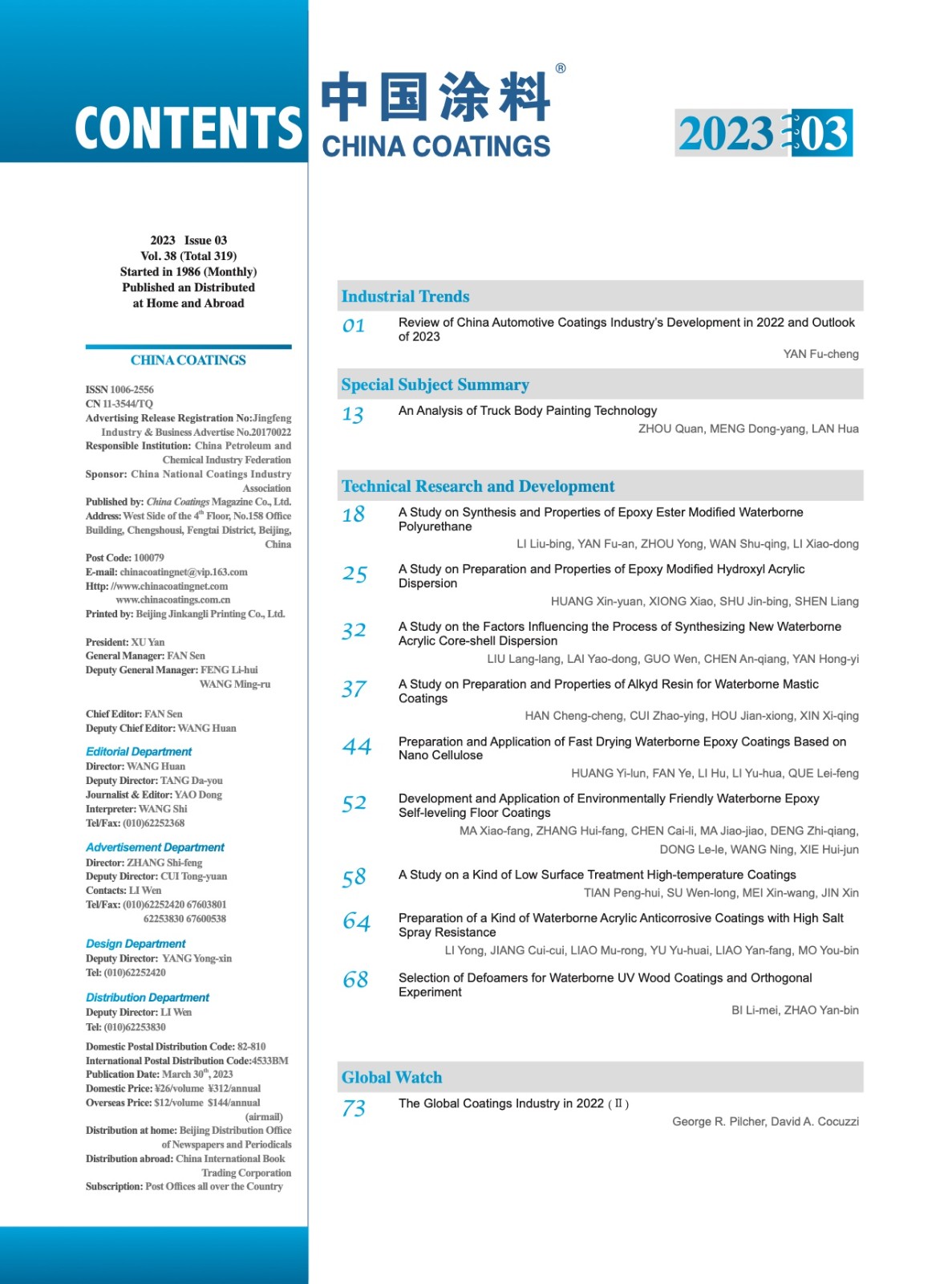 《中國涂料》第202303期 目次