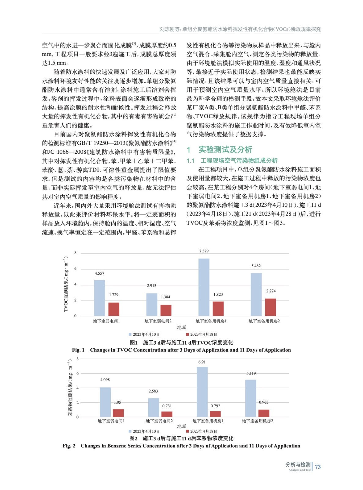 單組分聚氨酯防水涂料揮發性有機化合物(VOCs)釋放規律探究