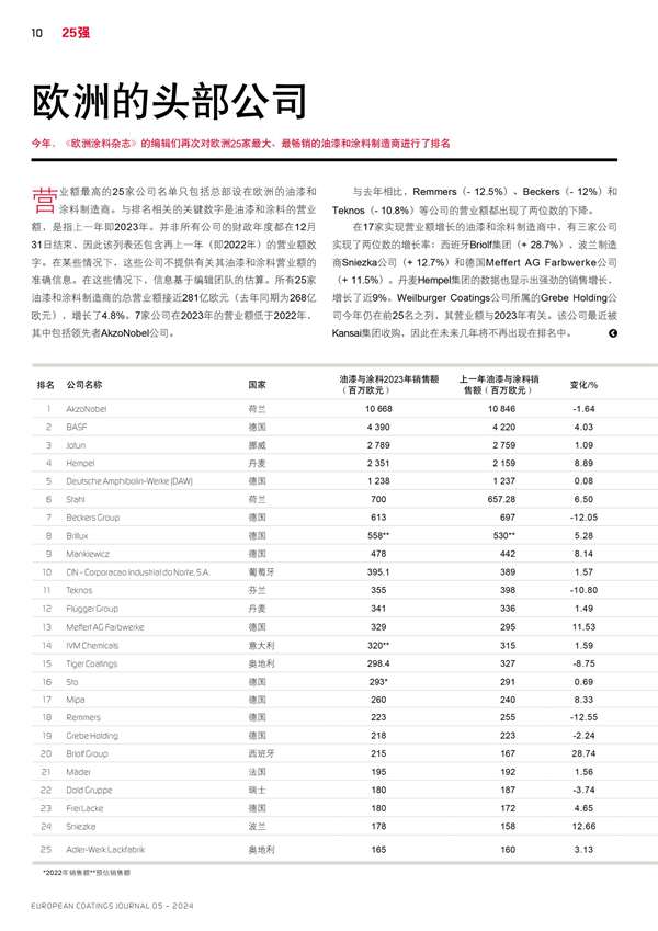 歐洲最大涂料制造商排名