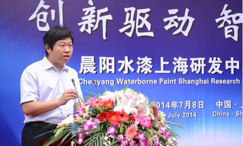 晨陽(yáng)集團(tuán)副總裁花東栓在晨陽(yáng)水漆上海研發(fā)中心揭牌儀式上講話(huà)
