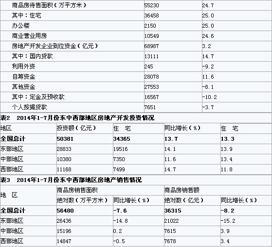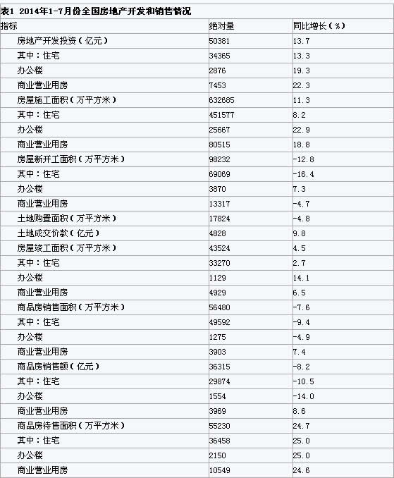 2014年1-7月份,全國(guó)房地產(chǎn)開發(fā)投資50381億元,同比名義增長(zhǎng)13.7%,增速比1-6月份回落0.4個(gè)百分點(diǎn)。其中,住宅投資34365億元,增長(zhǎng)13.3%,增速回落0.4個(gè)百分點(diǎn),占房地產(chǎn)開發(fā)投資的比重為68.2%。