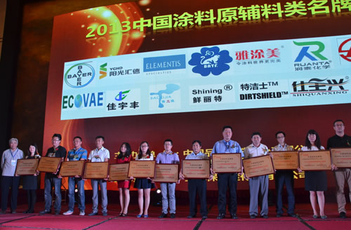 2014年8月27日,全國(guó)優(yōu)質(zhì)的水性樹(shù)脂供應(yīng)商北京陽(yáng)光匯德環(huán)保科技有限公司,于沈陽(yáng)召開(kāi)的“2013中國(guó)涂料品牌榜頒獎(jiǎng)慶典活動(dòng)”上榮獲 “2013中國(guó)涂料原輔料類名牌獎(jiǎng)”這一獎(jiǎng)項(xiàng),該獎(jiǎng)項(xiàng)再次肯定了陽(yáng)光匯德具備先進(jìn)的技術(shù)水平和優(yōu)質(zhì)的水性樹(shù)脂產(chǎn)品,奠定了陽(yáng)光匯德水性樹(shù)脂領(lǐng)跑者的地位。