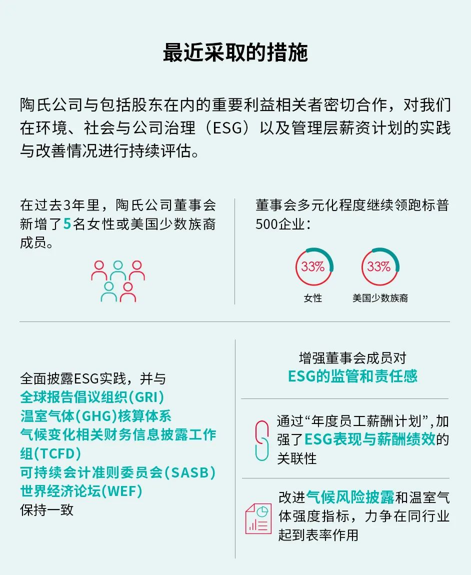 陶氏公司發布第二份環境、社會和公司治理(ESG)年度綜合報告,進一步突顯其對數據披露透明度的承諾、以及公司如何為應對全球挑戰提供解決方案、為所有利益相關者創造長期價值而付諸的努力。