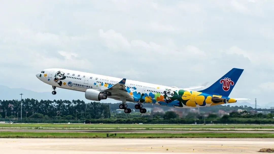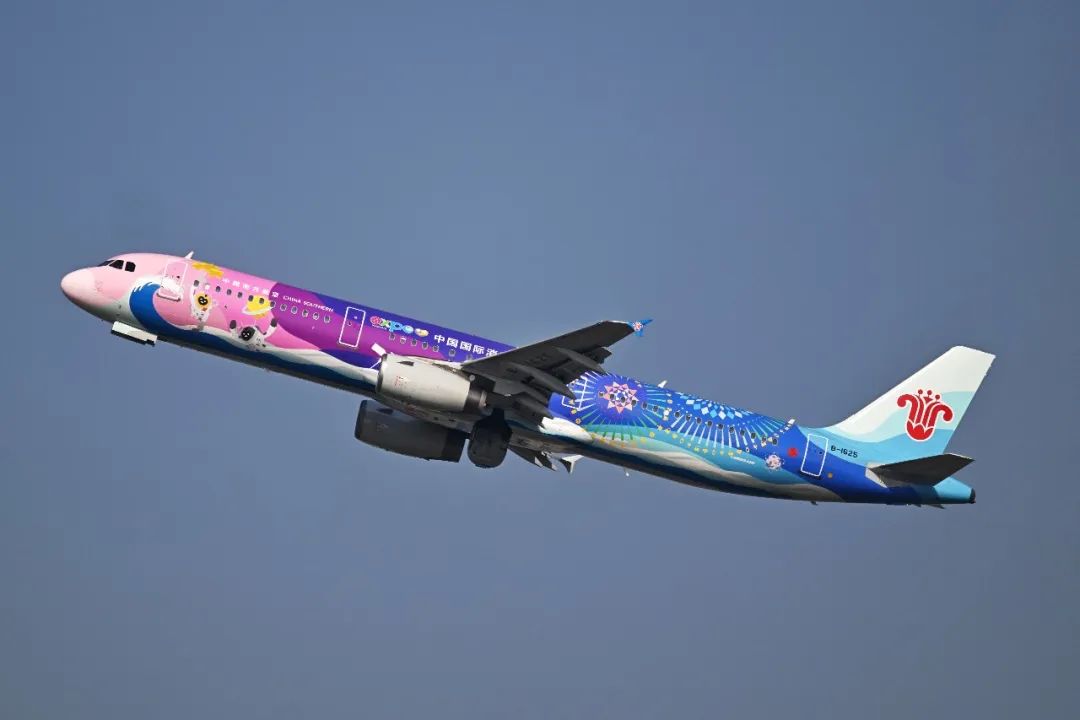 “消博號”主題彩繪飛機選用南航旗下空客A321機型,由南航集團與海南國際經濟發展局合作推出。它的機身以70多種斑斕色彩描繪著在吉祥物們在“南繁、深海、航天”場景下的靈動畫面,寓意著消博會熱情迎接全球企業和消費者的到來。