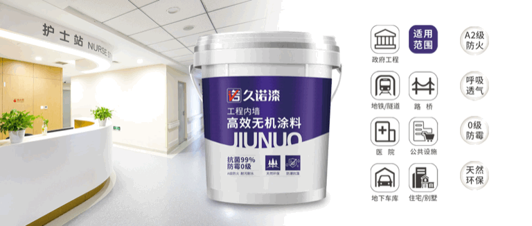 在國家雙碳目標以及人們逐漸提高的環保、健康意識的背景下,建筑工程市場對建筑裝修所用涂料的環保性逐步提出要求,疊加家裝市場對環保內墻涂料的需求,無機涂料受到空前關注。基于無機涂料取材于天然巖石無毒無害的特質,久諾以“三大創新性突破”為理念成功研發多款工程無機涂料,實現從源頭即環保,且生產過程完全不添加任何對人體有害的物質,以優于行業競品的防火阻燃更安全、無醛無苯無毒害、抗菌防霉耐擦洗等高優性能迅速破圈占領市場,目前已被廣泛應用于A級防火要求區域、商業、公建、地下、消防通道等多元化場景。久諾無機涂料以優質產品力捍衛企業生命力,傳遞合作伙伴信任力,鍛造中國品質工程的核心基因!