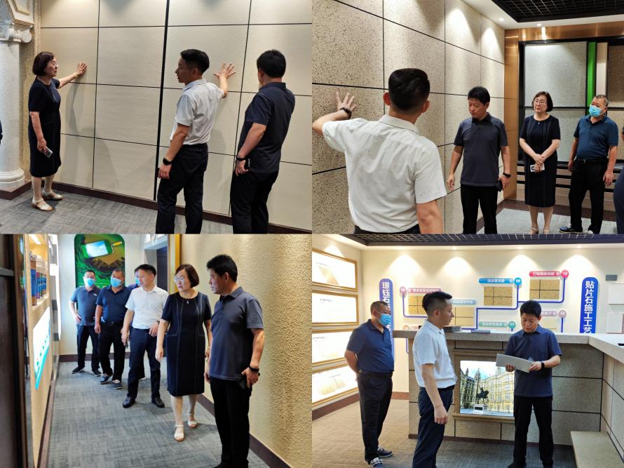 在吳曉明秘書長的帶領下,李鑄濤副區長一行領導赴寧波富麗佳涂料有限公司參觀了產品展示廳,對寧波的建筑涂料在新產品、新技術、新工藝方面表示贊揚。