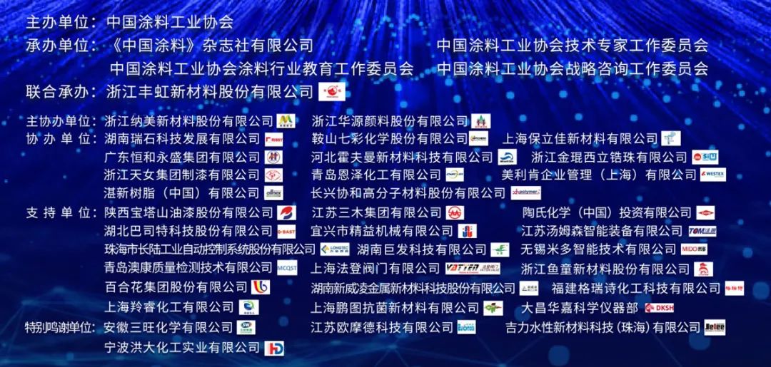 本次大會由中國涂料工業協會主辦,浙江豐虹新材料股份有限公司聯合承辦,浙江納美新材料股份有限公司、浙江華源顏料股份有限公司主協辦,可謂大咖聚首,群英聚會,特別感謝以下單位的大力支持。