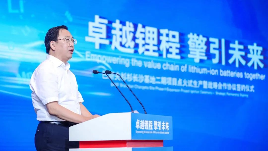 湖南省委常委、長沙市委書記吳桂英,長沙市委副書記、湖南湘江新區(qū)黨工委書記、岳麓區(qū)委書記譚勇等政府領導,巴斯夫大中華區(qū)董事長兼總裁樓劍鋒博士,寧波杉杉股份有限公司董事兼湖南永杉鋰業(yè)有限公司董事長楊峰,巴斯夫電池材料全球高級副總裁兼巴斯夫杉杉電池材料有限公司董事長貝銘凱博士(Dr. Michael Baier),巴斯夫全球高級副總裁鄭大慶博士,真鋰研究創(chuàng)始人、總裁墨柯及國內(nèi)外行業(yè)各方代表,以及巴斯夫杉杉CEO楊捷、常務副總經(jīng)理暨COO暨CTO彭文杰等公司代表出席儀式并共同見證。
