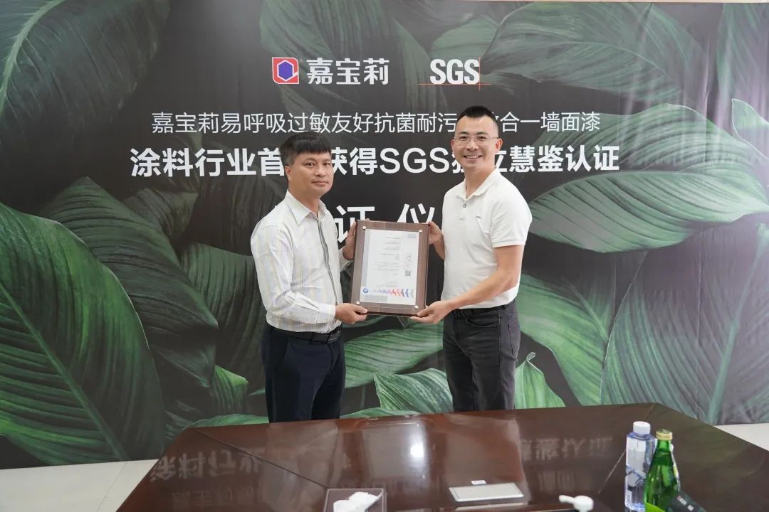 近日,國際公認的檢驗、測試和認證機構SGS攜手嘉寶莉,成功舉辦了“SGS授予嘉寶莉易呼吸墻面漆涂料行業首張獨立慧鑒認證”頒證儀式。此認證為SGS在中國發出的涂料行業首張獨立慧鑒認證。