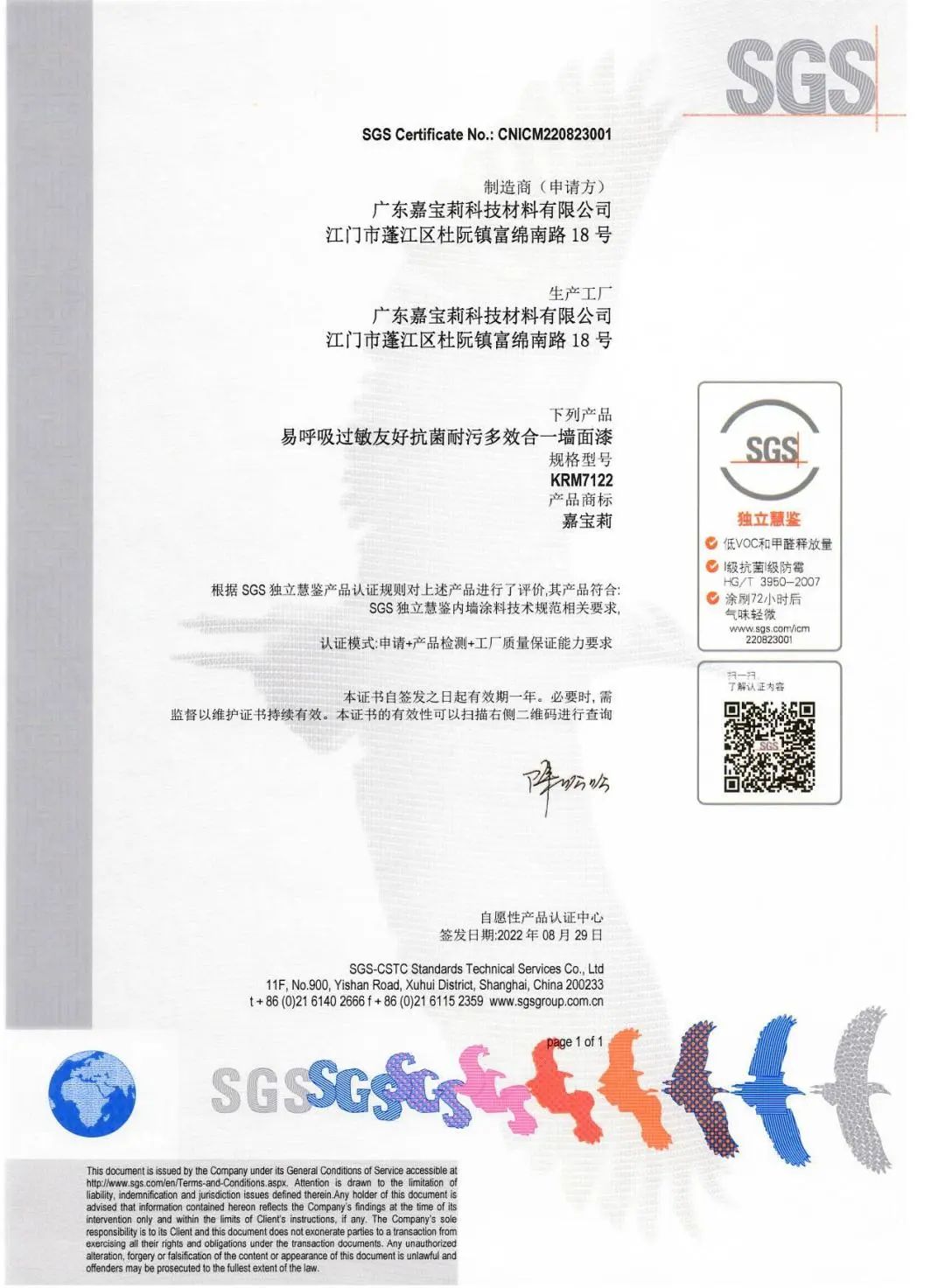 易呼吸墻面漆獲頒國內第一張涂料行業獨立慧鑒認證,是嘉寶莉長期以來堅持綠色發展、引領品質、健康、環保,創造美好生活的重要體現。而此次SGS獨立慧鑒認證的頒發,則是對嘉寶莉易呼吸墻面漆強大產品實力的又一次佐證。嘉寶莉堅信,只有專注研發創新,追求卓越品質,才能真正實現用涂料裝飾和保護我們熱愛的世界。