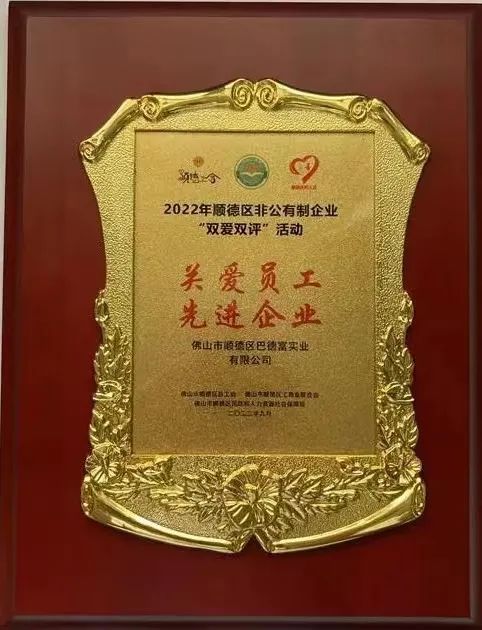 巴德富集團(tuán)獲評(píng)2022年順德區(qū)“關(guān)愛員工 先進(jìn)企業(yè)”稱號(hào)