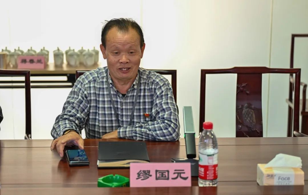 在交流座談會上,繆國元董事長對前來參觀交流的睢岳明和吳波清兩位鎮領導、馮春方理事長、常州紡院黨委書記吳訪升一行的到訪表示熱烈歡迎,并介紹了晨光集團的發展歷程及科研創新發展特色、企業研發人員組織機構和研究大致方向和課題。
