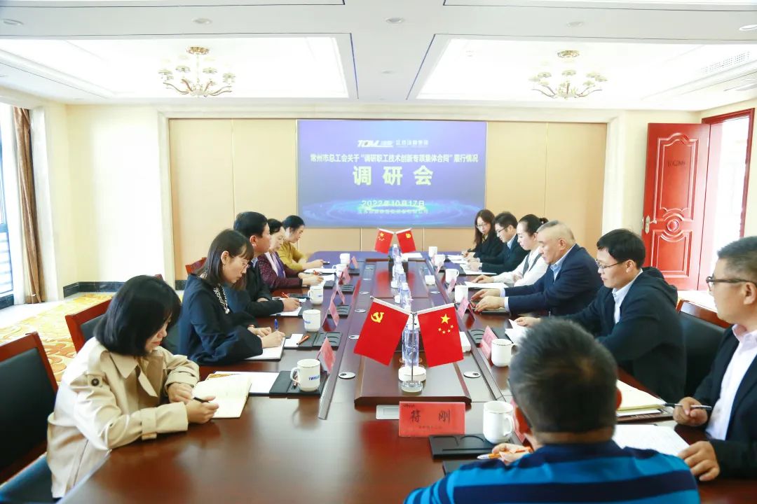 金風(fēng)送爽,秋色宜人,在黨的二十大勝利召開之際,10月17日下午,在區(qū)總工會(huì)副主席人社局副局長(zhǎng)劉建華陪同下,常州市總工會(huì)集體協(xié)商專家王延花、奚志英等一行走訪了江蘇湯姆集團(tuán),并召開了關(guān)于“職工技術(shù)創(chuàng)新專項(xiàng)集體合同”履行情況調(diào)研會(huì)。