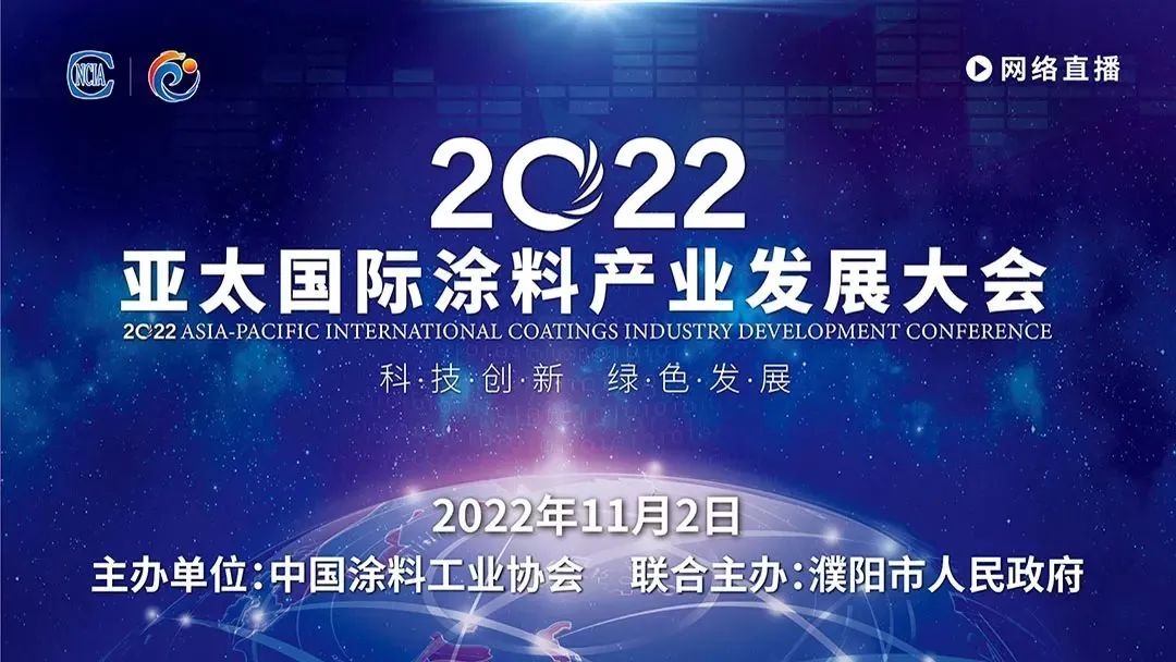 11月2日,以“科技創新,綠色發展”為主題、由中國涂料工業協會、濮陽市人民政府聯合主辦的“2022年亞太國際涂料產業發展大會”以網絡直播形式正式拉開帷幕,大咖云集,干貨滿滿,吸引了數以百萬計的涂料、涂裝及上下游人士在線觀看。