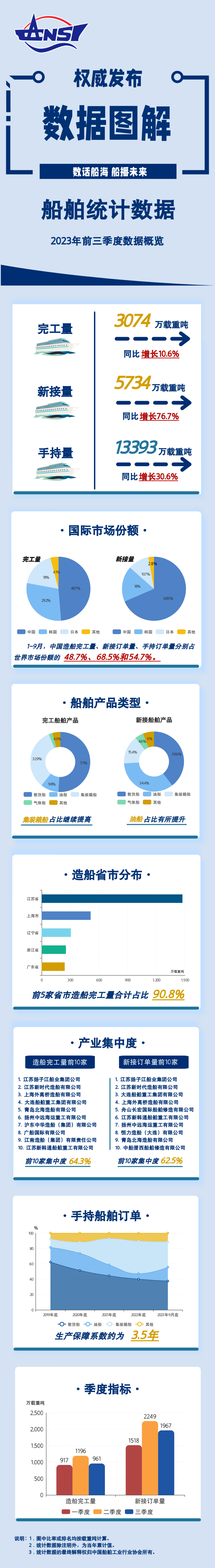 數據|一圖讀懂2023年前三季度船舶統計數據