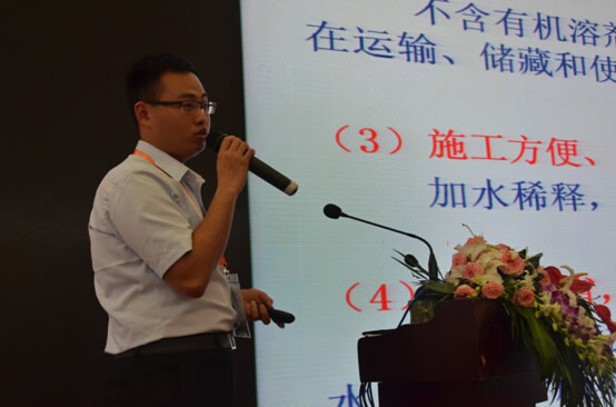 最后一個(gè)議題由廣州集泰化工有限公司的陳國然工程師主講,他的報(bào)告是《水性防腐涂料的研發(fā)進(jìn)展與運(yùn)用》。陳國然從目前國內(nèi)水性防腐涂料的市場(chǎng)背景講起,預(yù)測(cè)了水性防腐涂料的發(fā)展前景,并介紹了集泰化工水性涂料的研發(fā)進(jìn)展與科技成果。在報(bào)告的最后,陳工說,水性防腐涂料今后的市場(chǎng)份額會(huì)越來越大,因?yàn)榧ち业母?jìng)爭(zhēng),水性防腐涂料的成本會(huì)逐步下降,水性涂料將逐漸取代溶劑型涂料,環(huán)境友好型產(chǎn)品會(huì)成為最后的贏家。